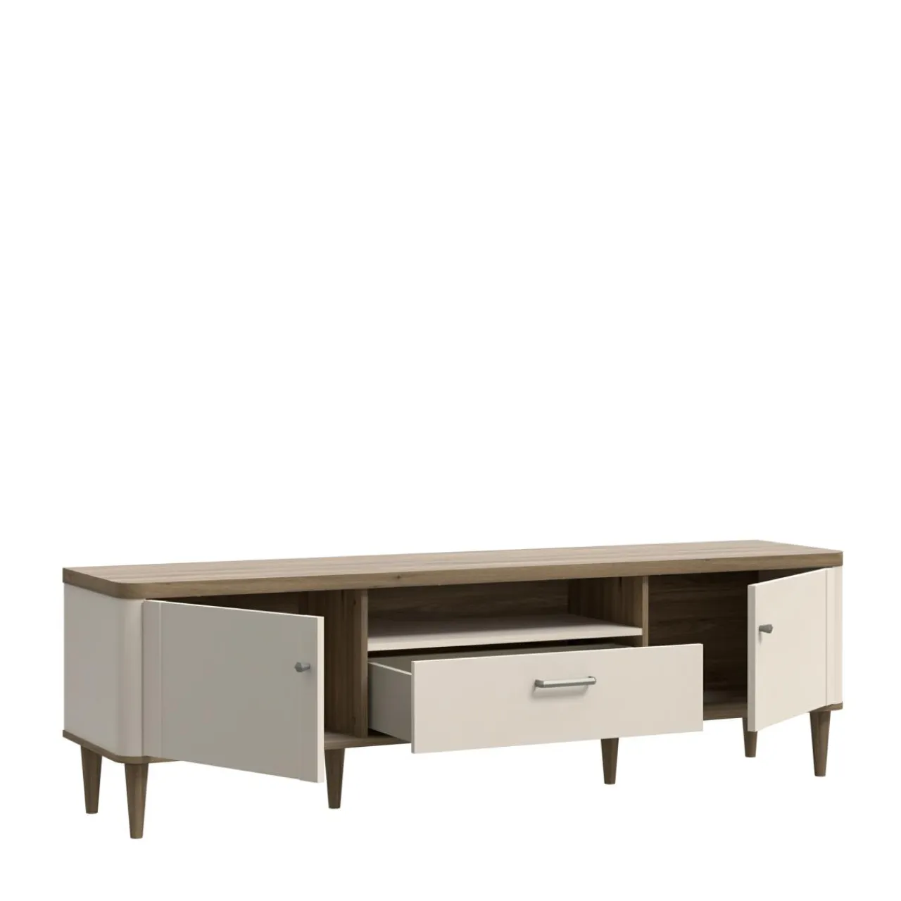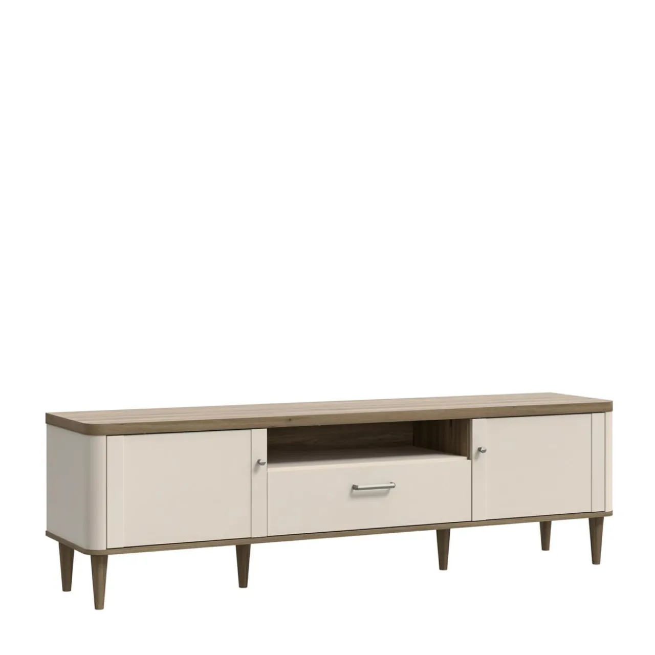 - Delikatnie zaokrąglone kształty korpusów, blatów i nóżek dodają lekkości, wprowadzając harmonię do wnętrza.