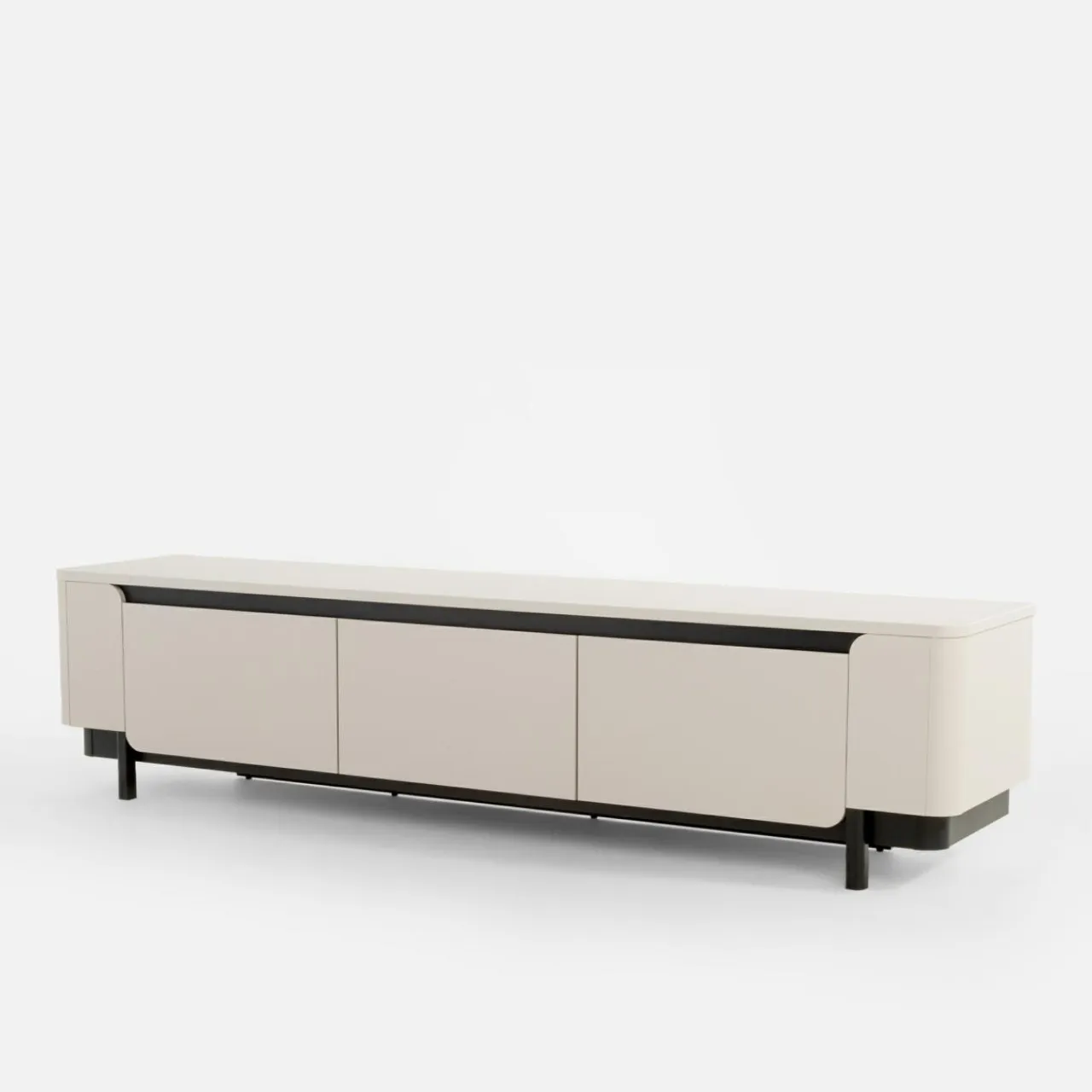 - Połączenie ciepłego piaskowego beżu z czarnymi elementami wpisuje się w nowoczesne wnętrza i aktualne trendy.