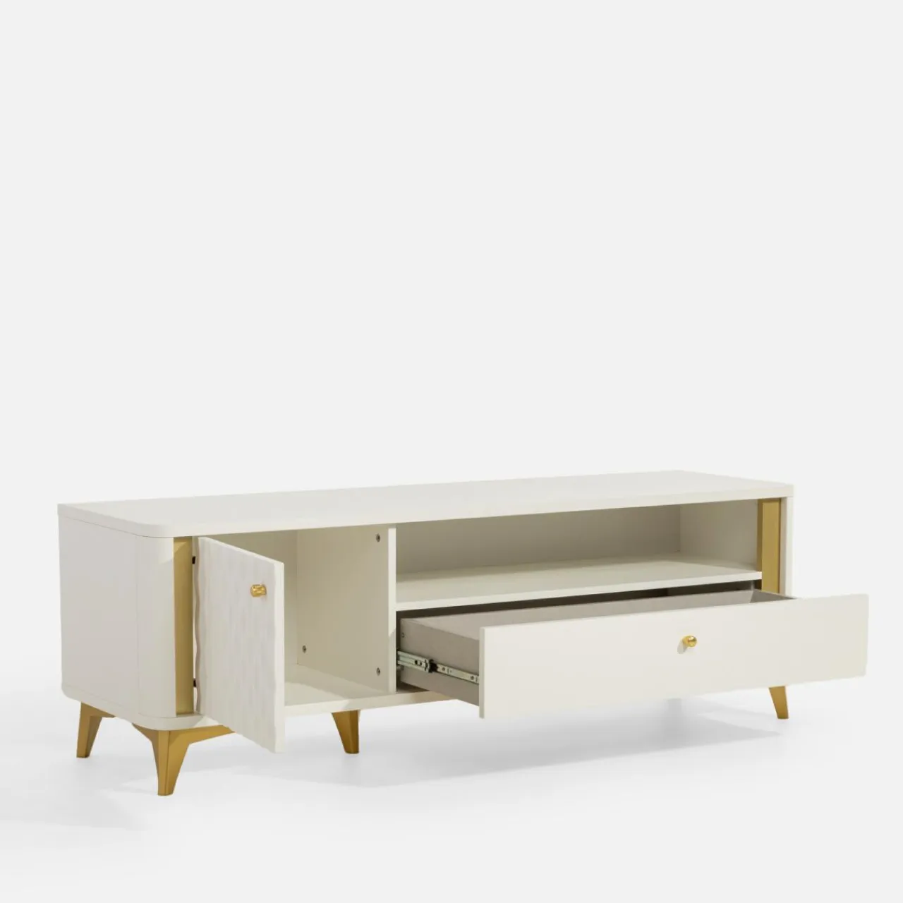 - W zamkniętej wnęce ukryjesz instrukcje obsługi lub ułożysz swoją kolekcję filmów, chroniąc ją przed kurzem i światłem.