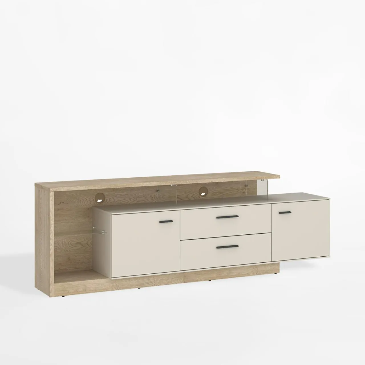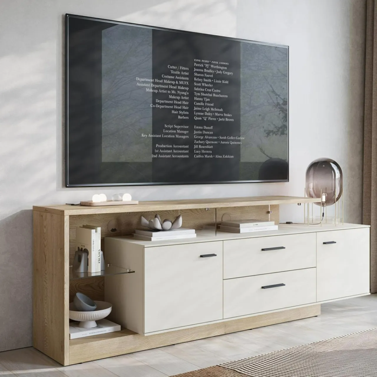 - Przestronny blat – szeroki na 191,5 cm, idealny na telewizor i dekoracje, takie jak rośliny czy zdjęcia.