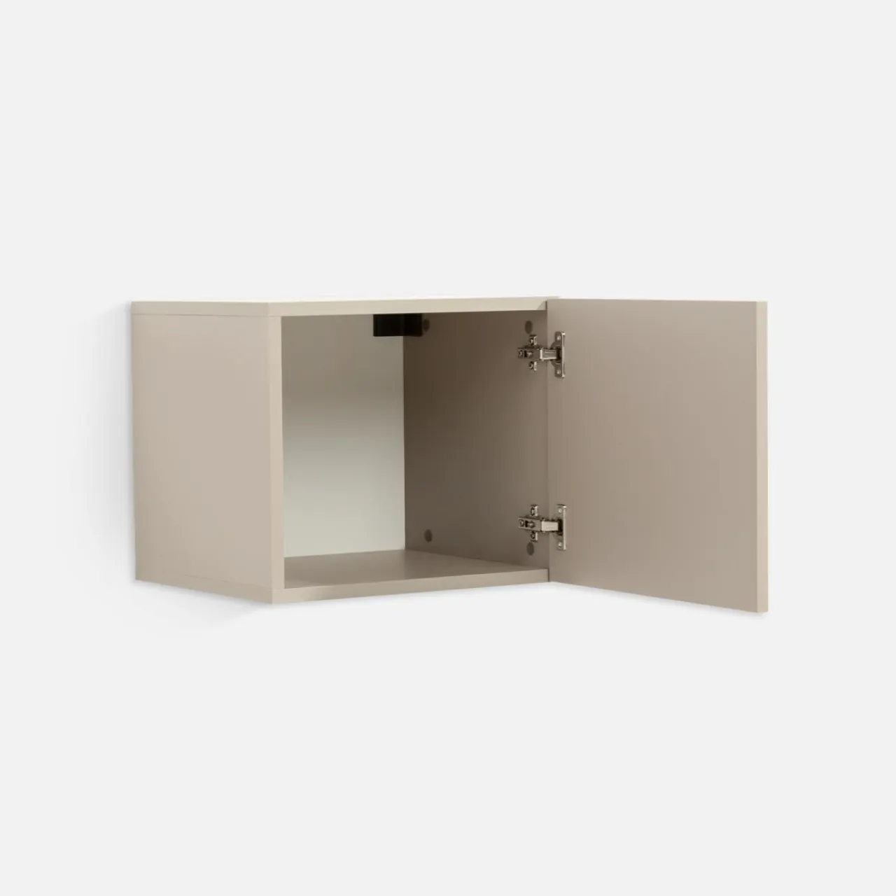 Pozioma szafka wisząca CREMONA ma niecałe 40 cm wysokości, dzięki czemu świetnie sprawdzi się do zabudowy wyższej części ściany lub między ścianą a sufitem.