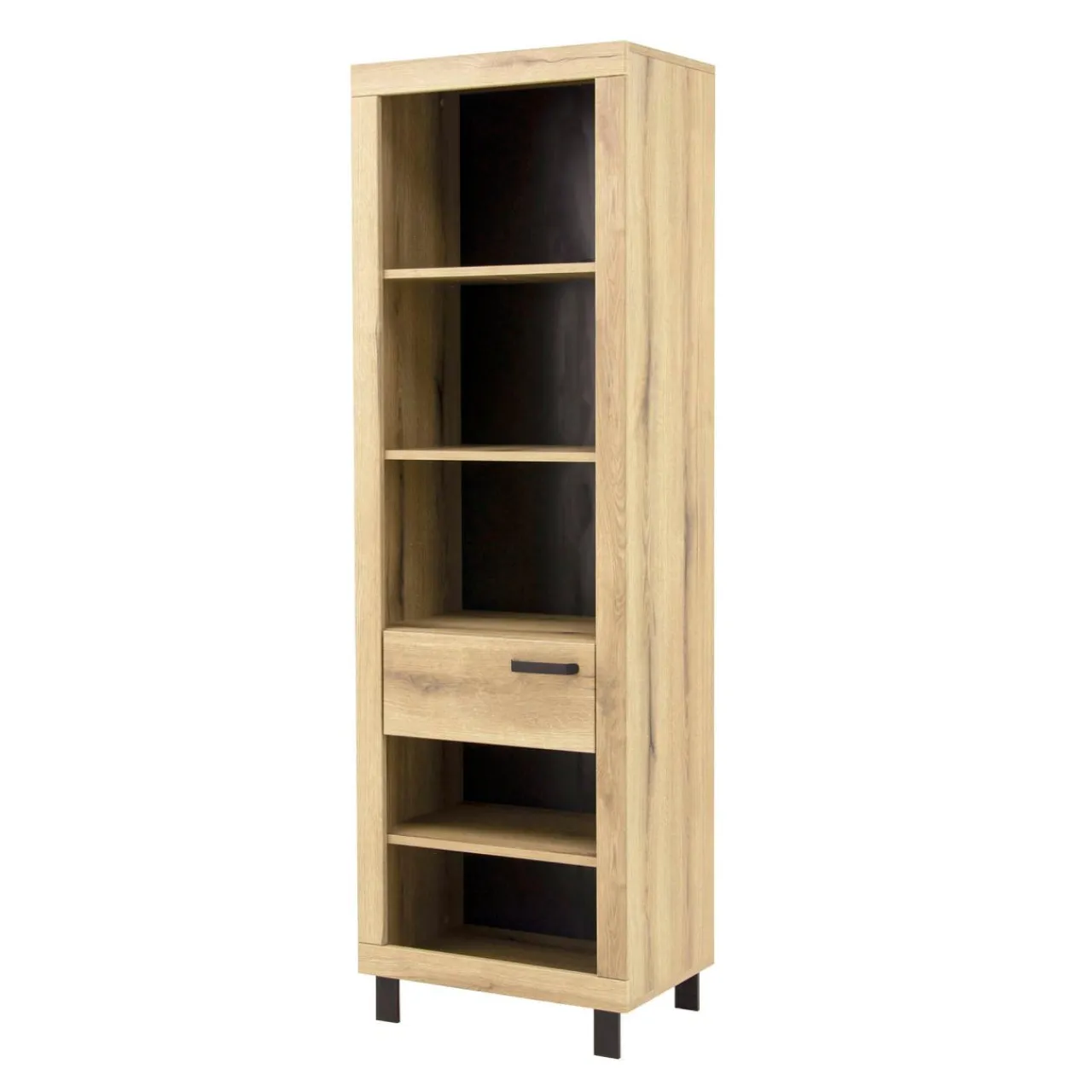 - Regał jest wykończony laminatem imitującym naturalny dąb w odcieniu Coast Evoke.