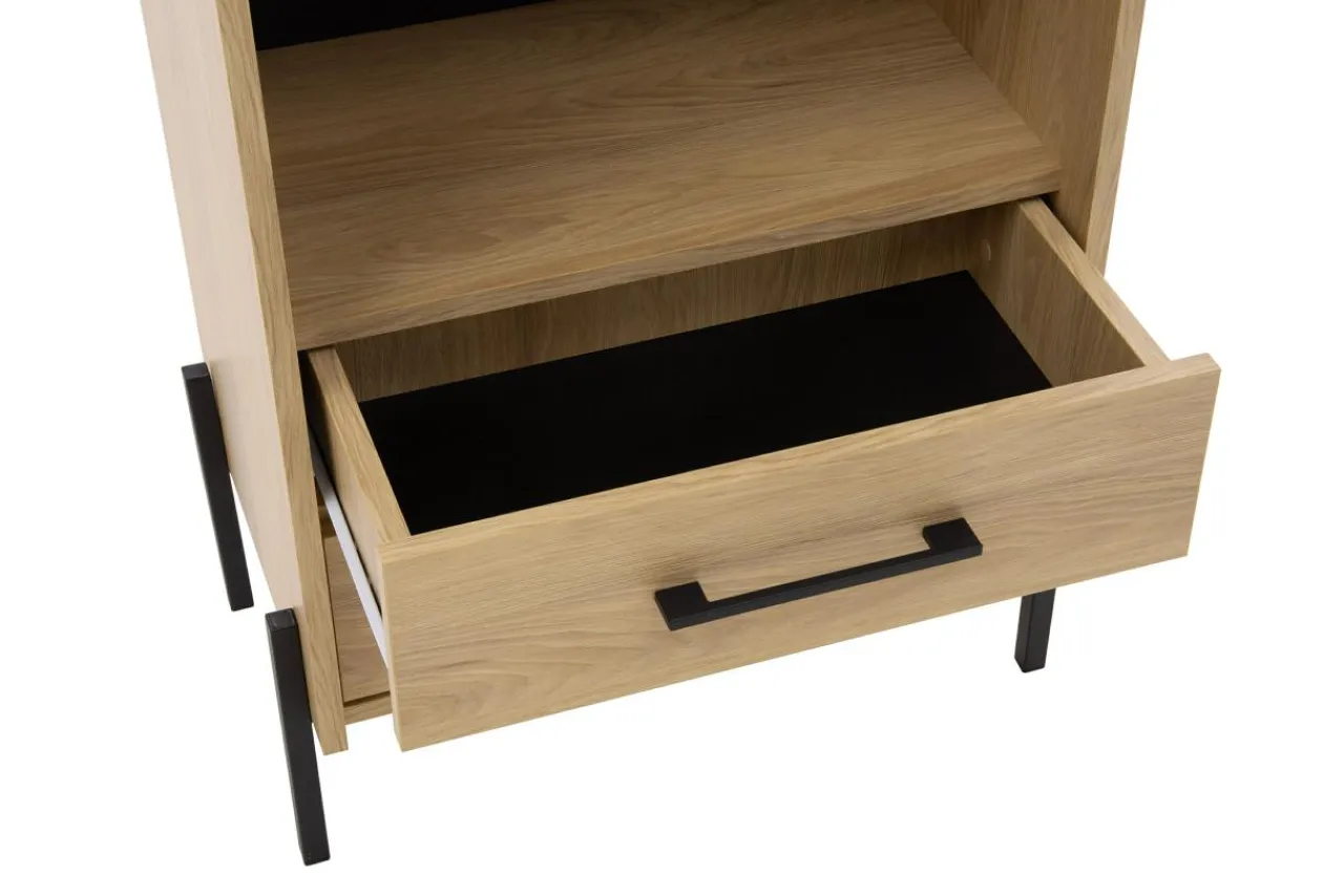 - Na meblach widoczny jest rysunek drewna, dzięki czemu prezentują się one naturalnie i elegancko.
