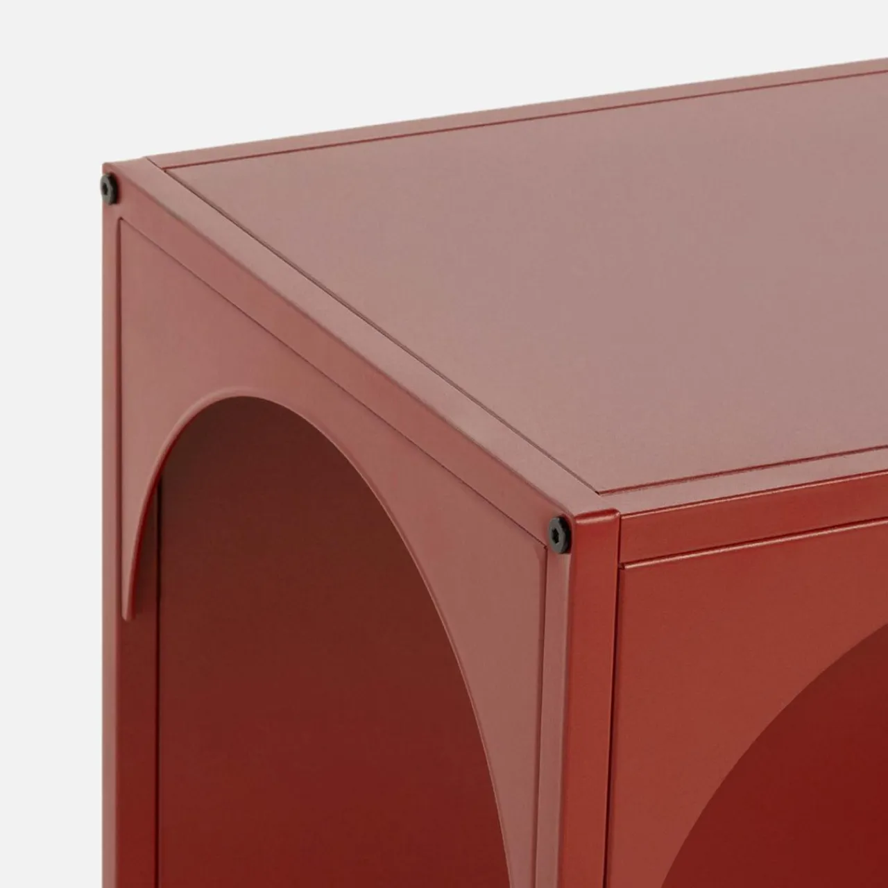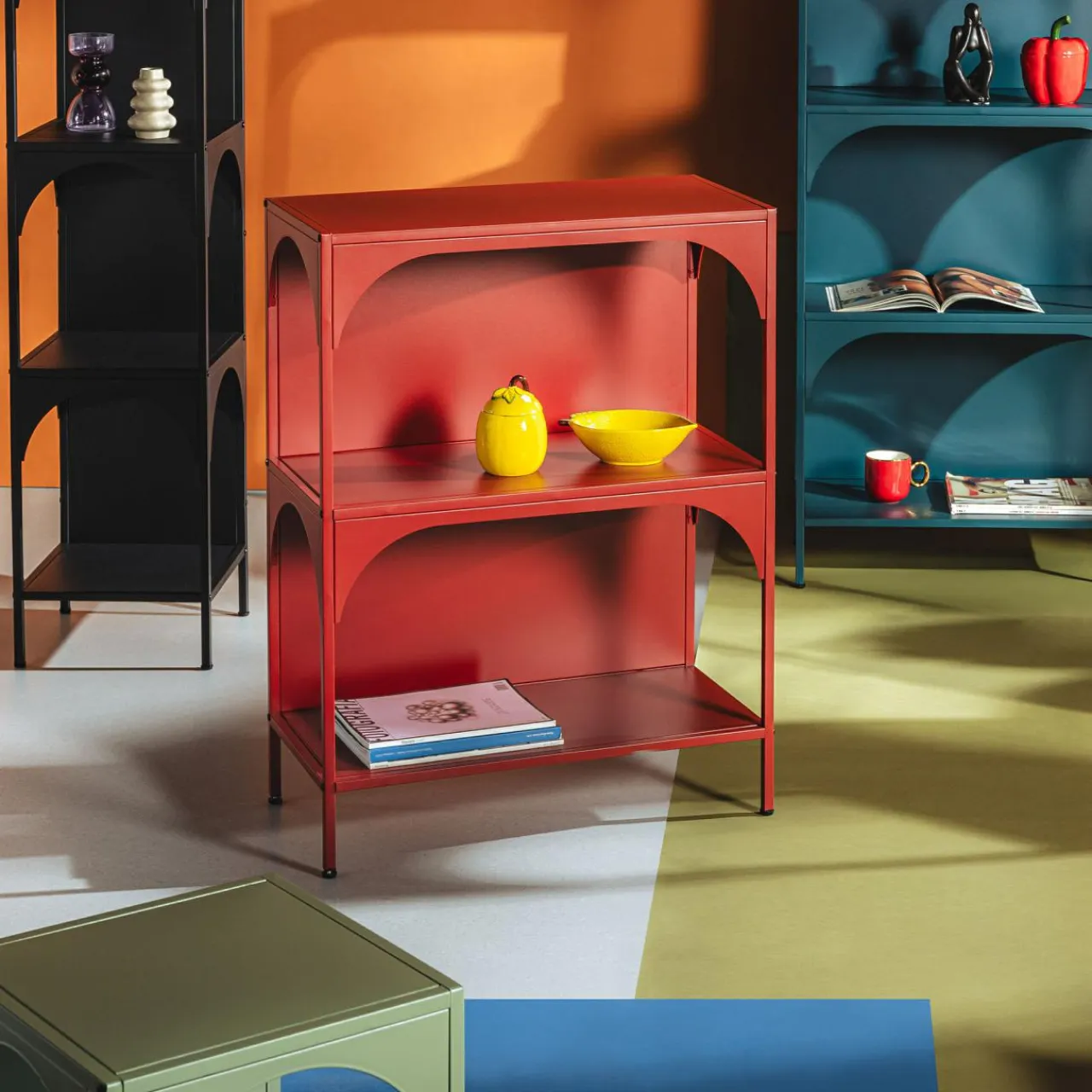 Regał HOCCA w czerwonym kolorze to doskonały wybór do każdego wnętrza, łączący nowoczesny design z dużą funkcjonalnością. Przestronny układ i atrakcyjny wygląd sprawiają, że jest idealnym rozwiązaniem do przechowywania i wyeksponowania ulubionych przedmiotów.