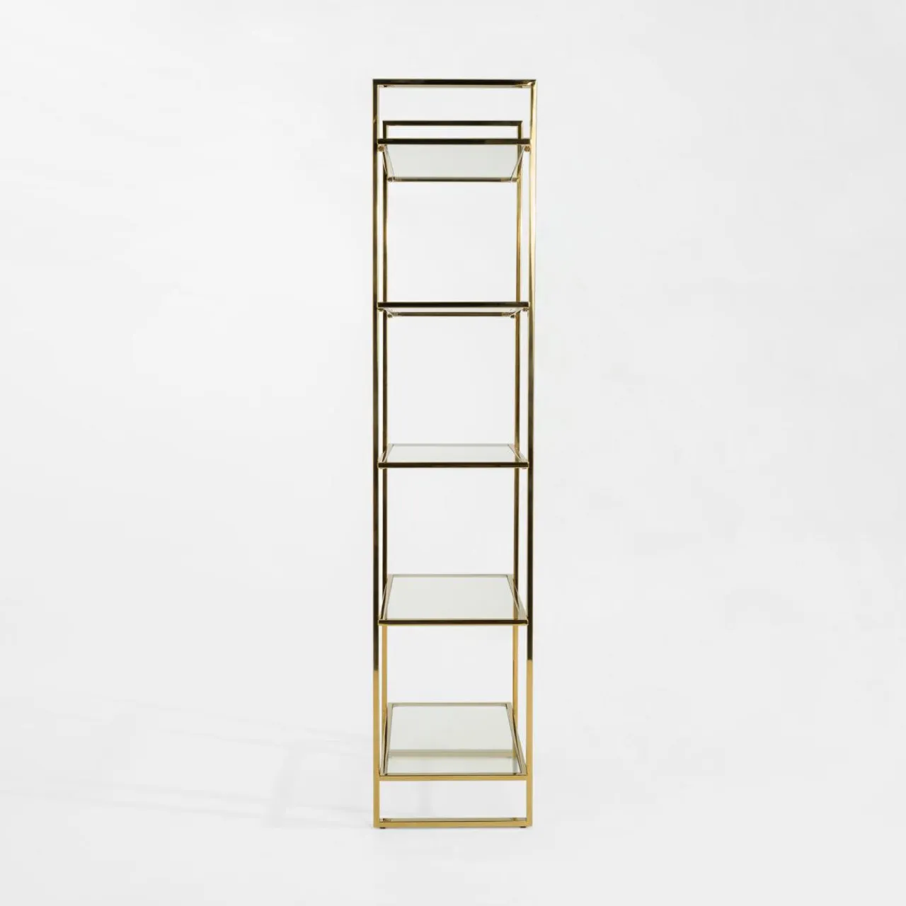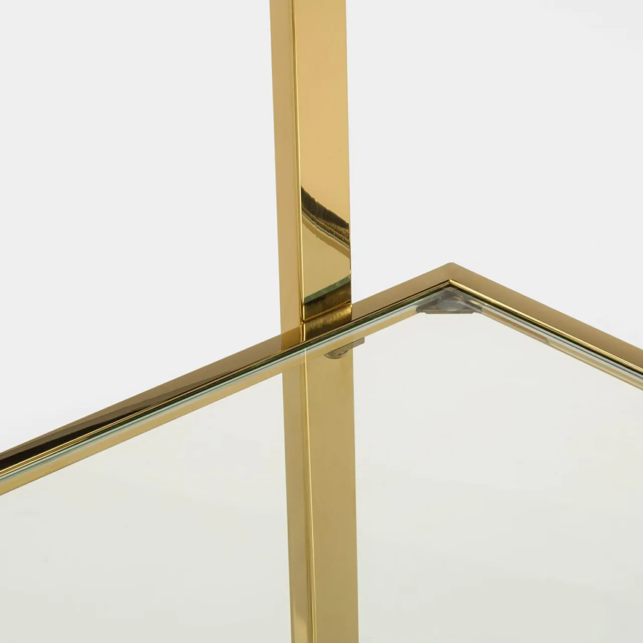 Z regałem EBRALIN stworzysz wymarzoną biblioteczkę w stylu glamour. Stelaż ze złotej stali nierdzewnej i szklane półki będą odpowiednim miejscem do ekspozycji swoich ulubionych książek.