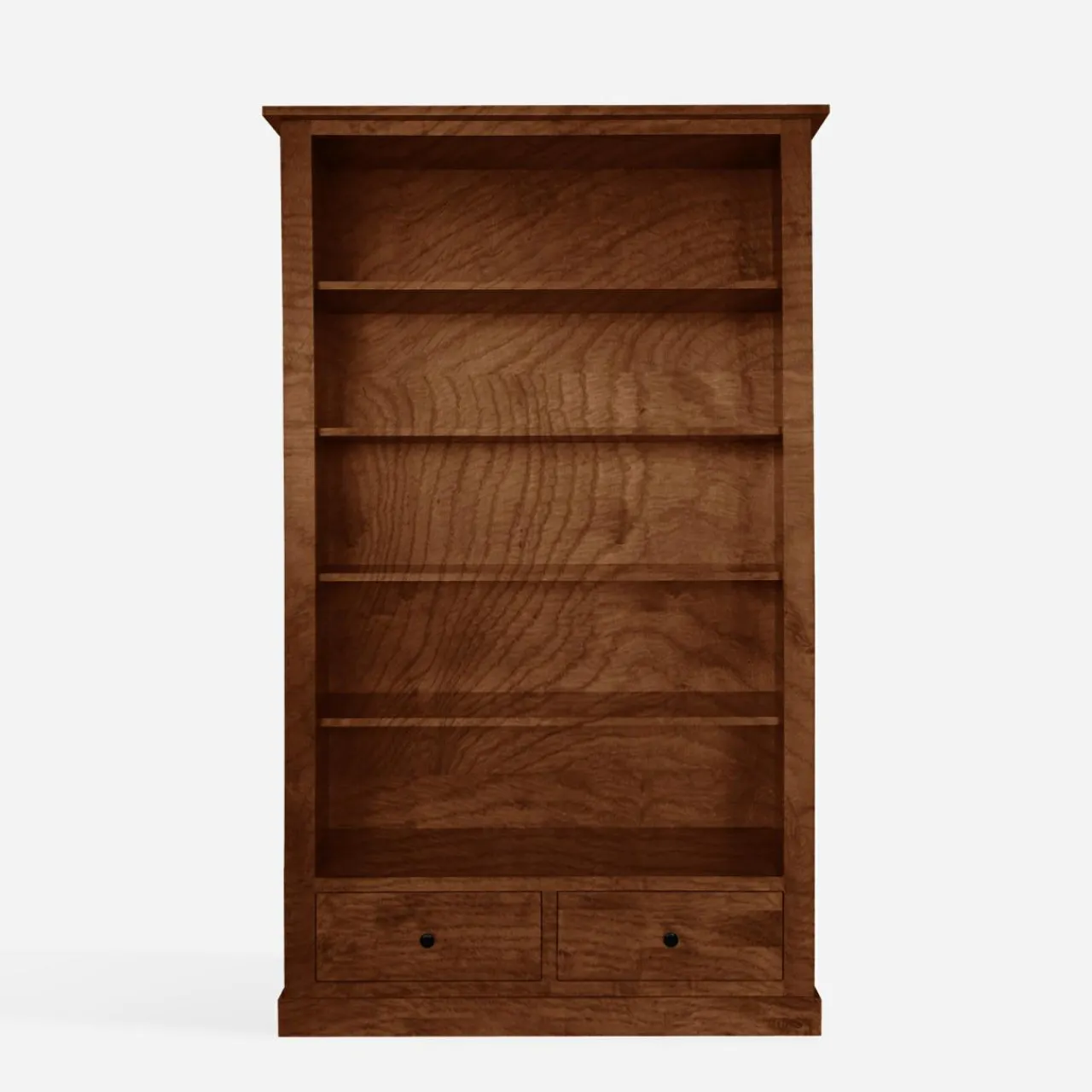 Regał STELLA to elegancki mebel wykonany z litego drewna w odcieniu dąb koniakowy. Elegancka konstrukcja łączy otwarte półki z szufladami, oferując zarówno miejsce na eksponowanie ulubionych przedmiotów, jak i praktyczną przestrzeń do przechowywania.