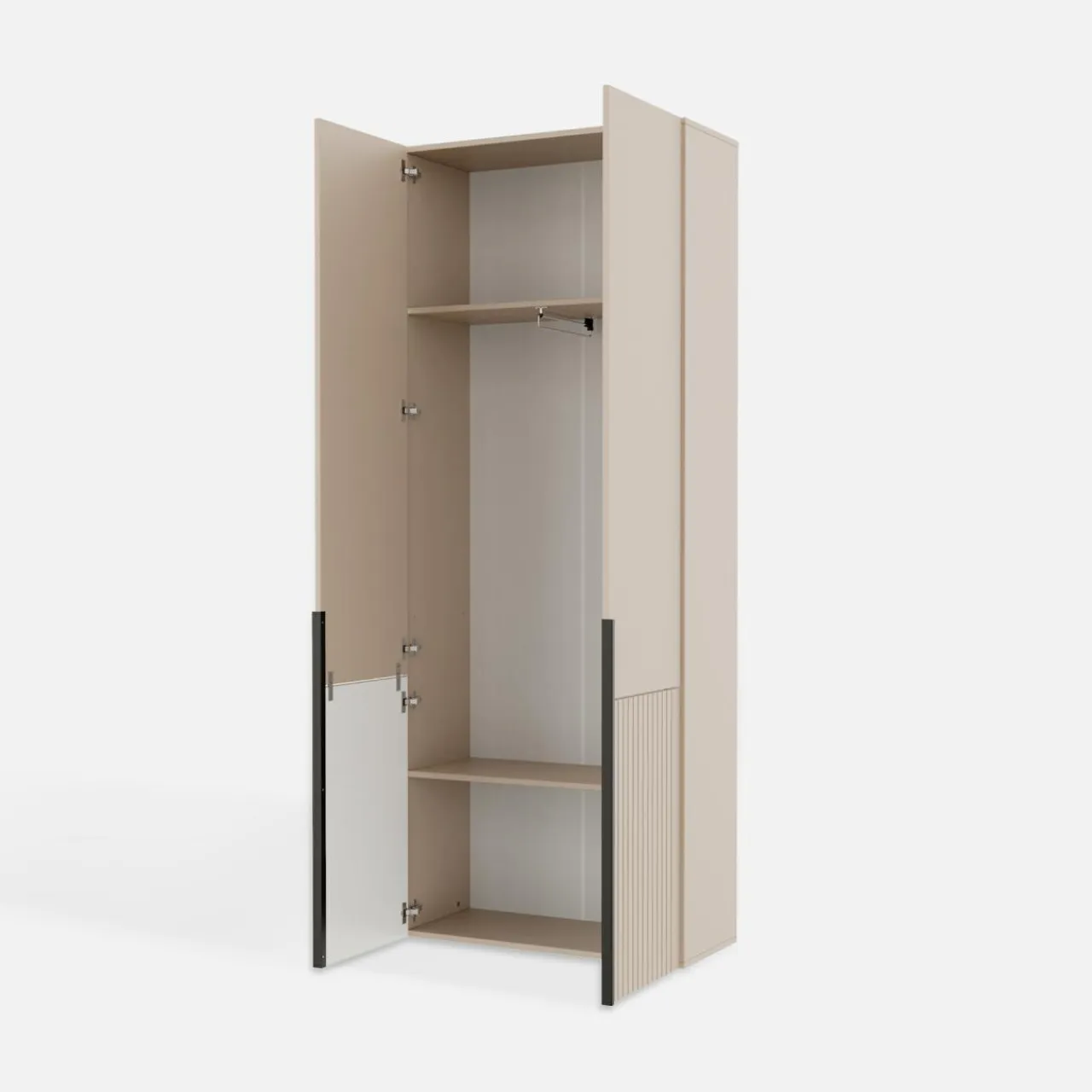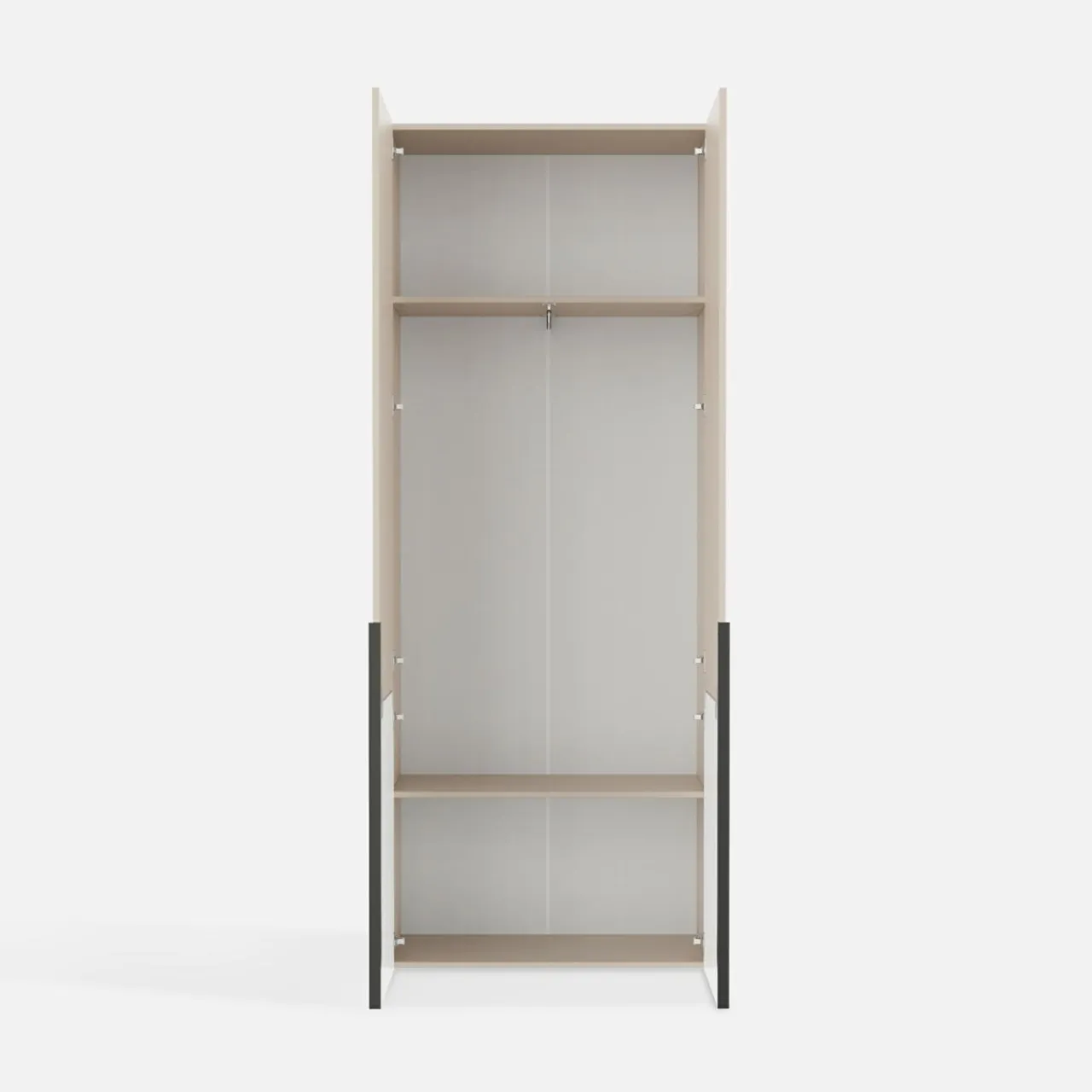 Szafa CREMONA pomoże Ci zachować porządek w ubraniach i obuwiu. Nie zabraknie miejsca na drobne przedmioty — torebki, żelazko czy pudełka z czapkami.