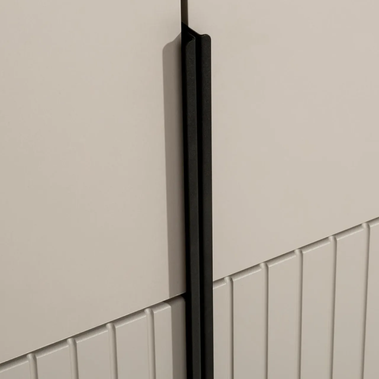 - Ryflowanie na części frontów przełamie gładkie powierzchnie, przyciągając uwagę domowników i gości.
