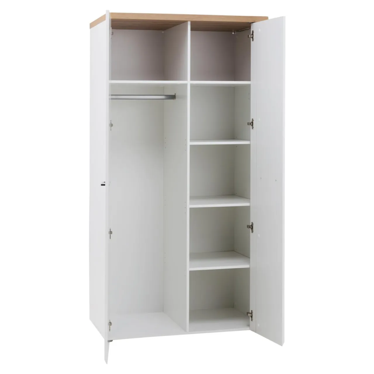 - Dwie duże wnęki, wyposażone w drążki na wieszaki.