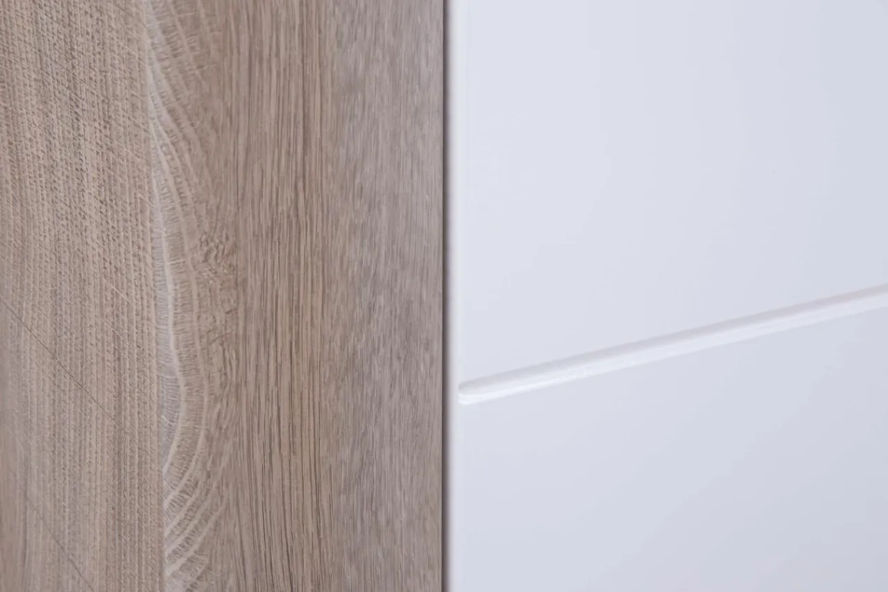 W drzwiach zamontowano zawiasy z systemem cichego domyku, dzięki czemu drzwi nie hałasują podczas zamykania.
