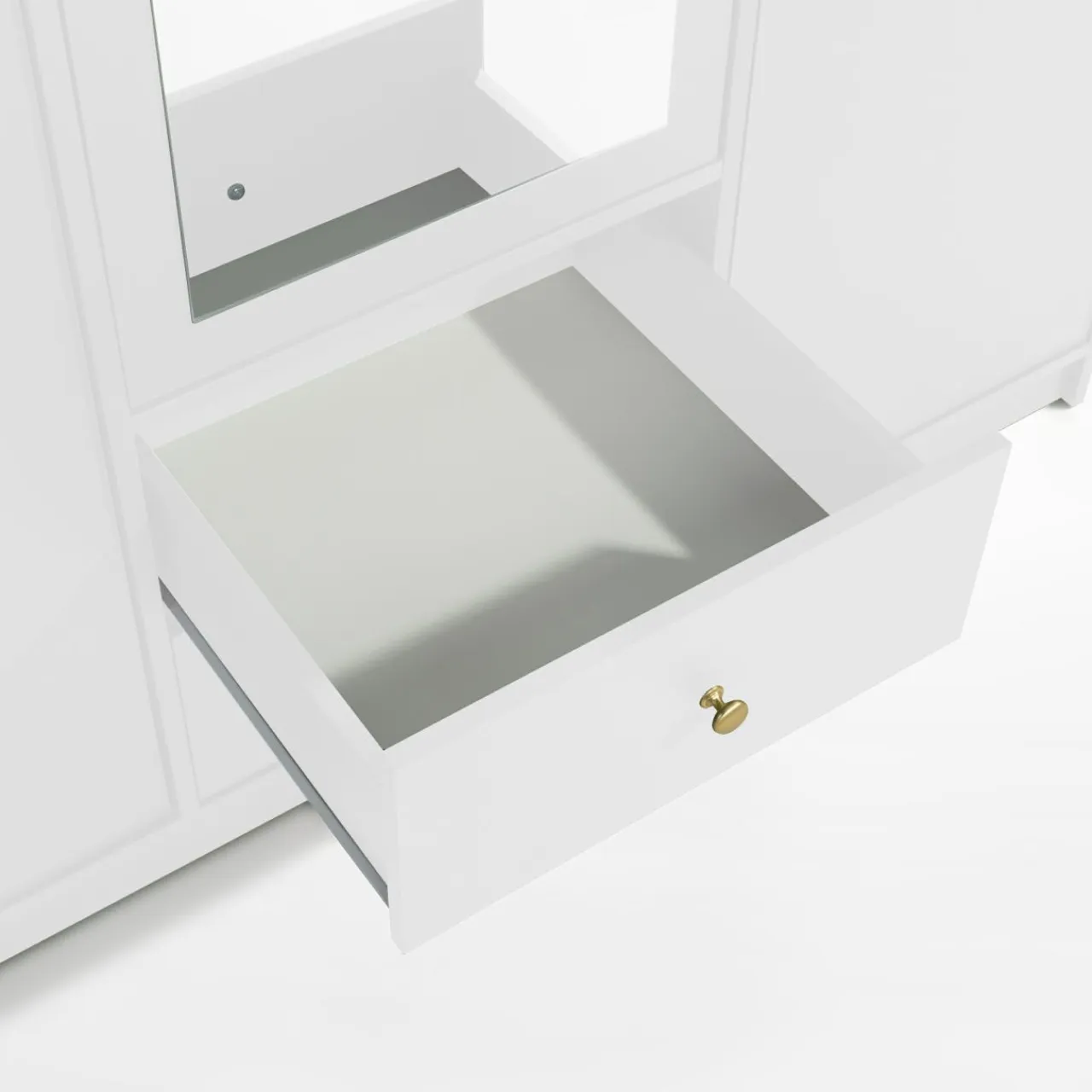 Lustro na froncie pozwoli Ci codziennie cieszyć się zabawą w stylizacje, a dodatkowo optycznie powiększy i rozświetli sypialnię rozproszonym światłem.