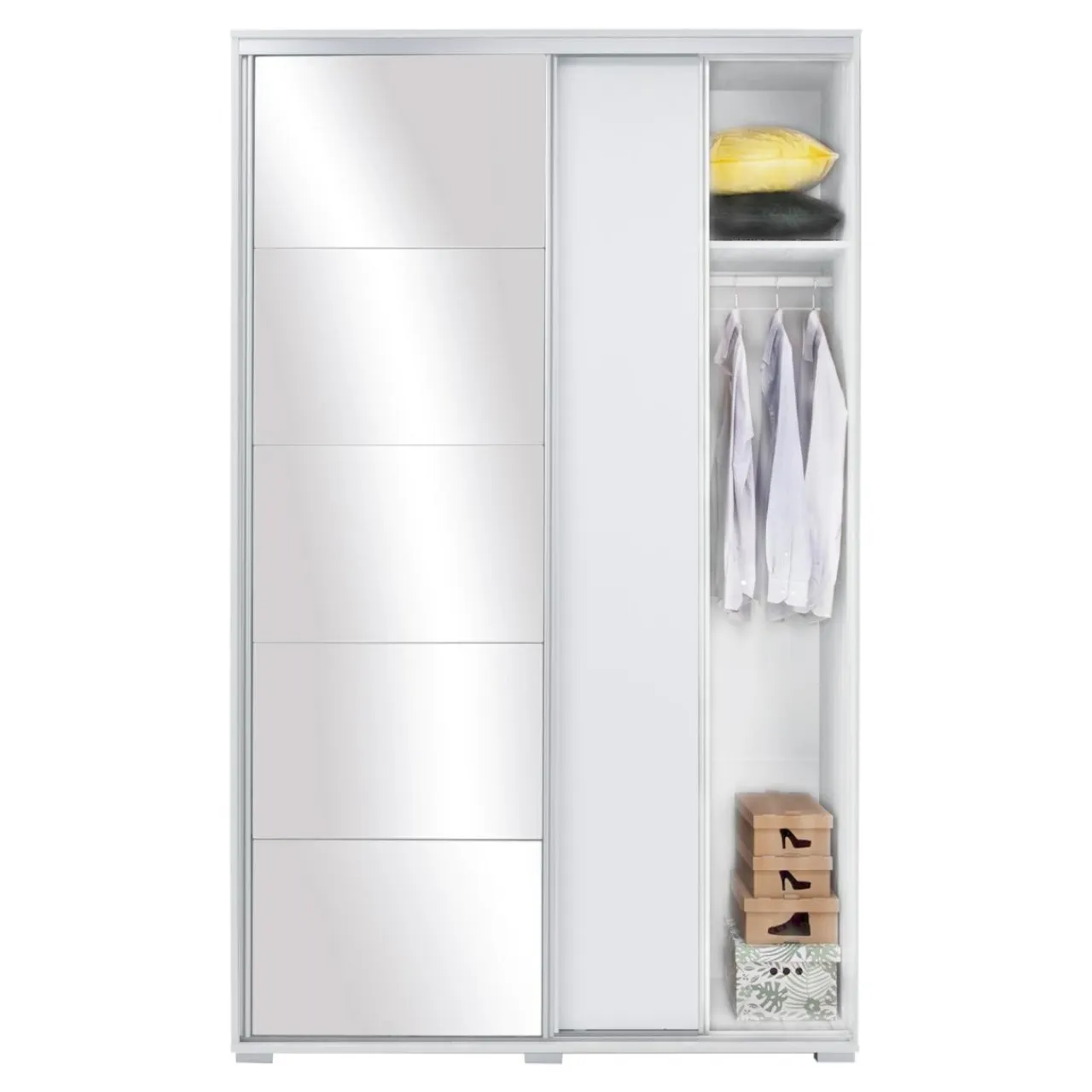 Dzięki drzwiom przesuwnym z łatwością skorzystasz z szafy w wąskim przedpokoju lub niewielkiej sypialni.