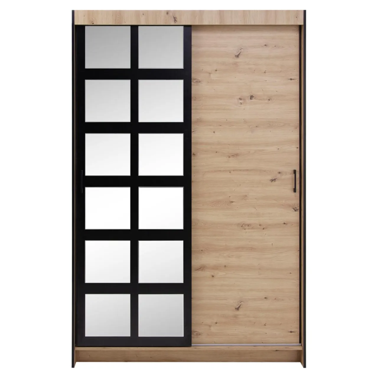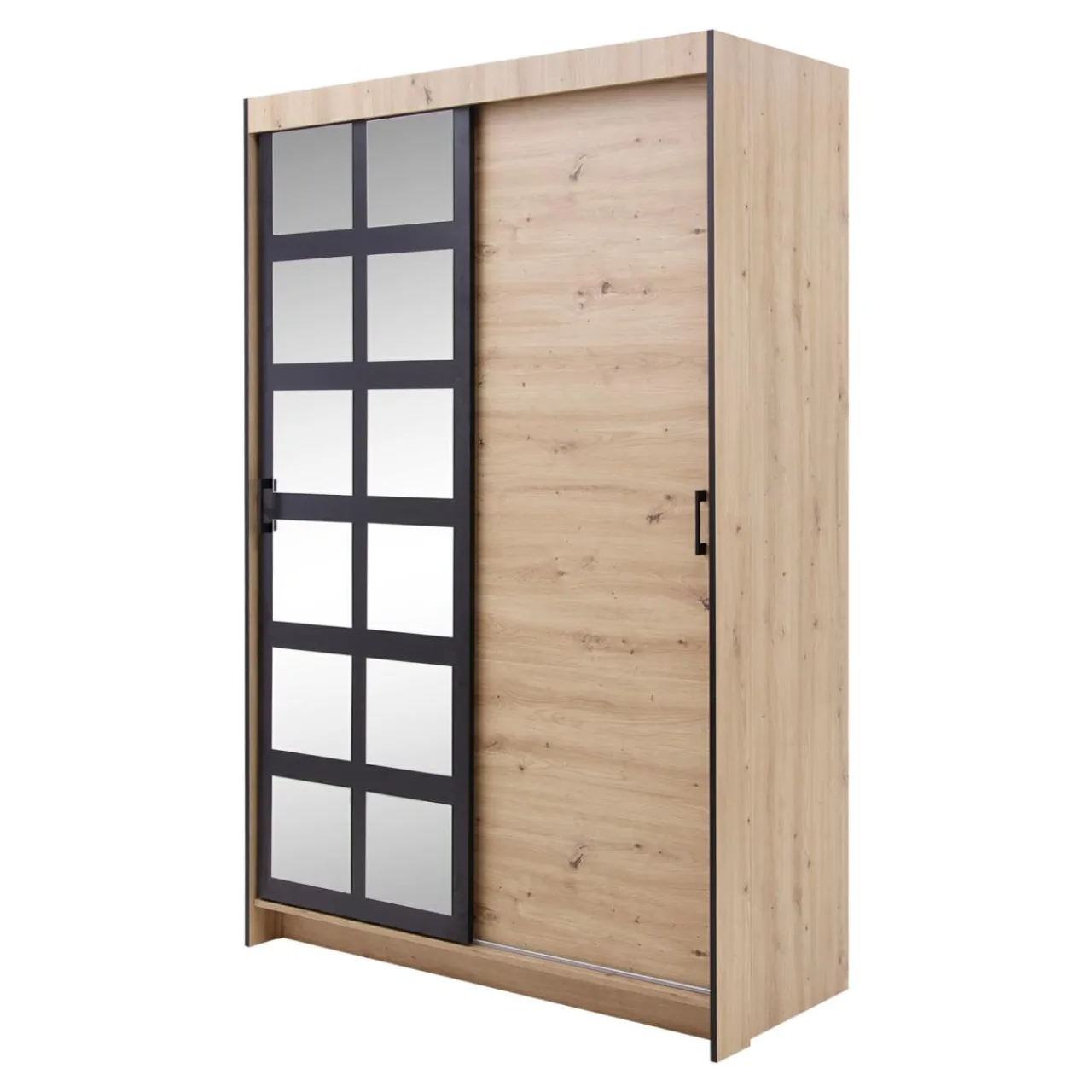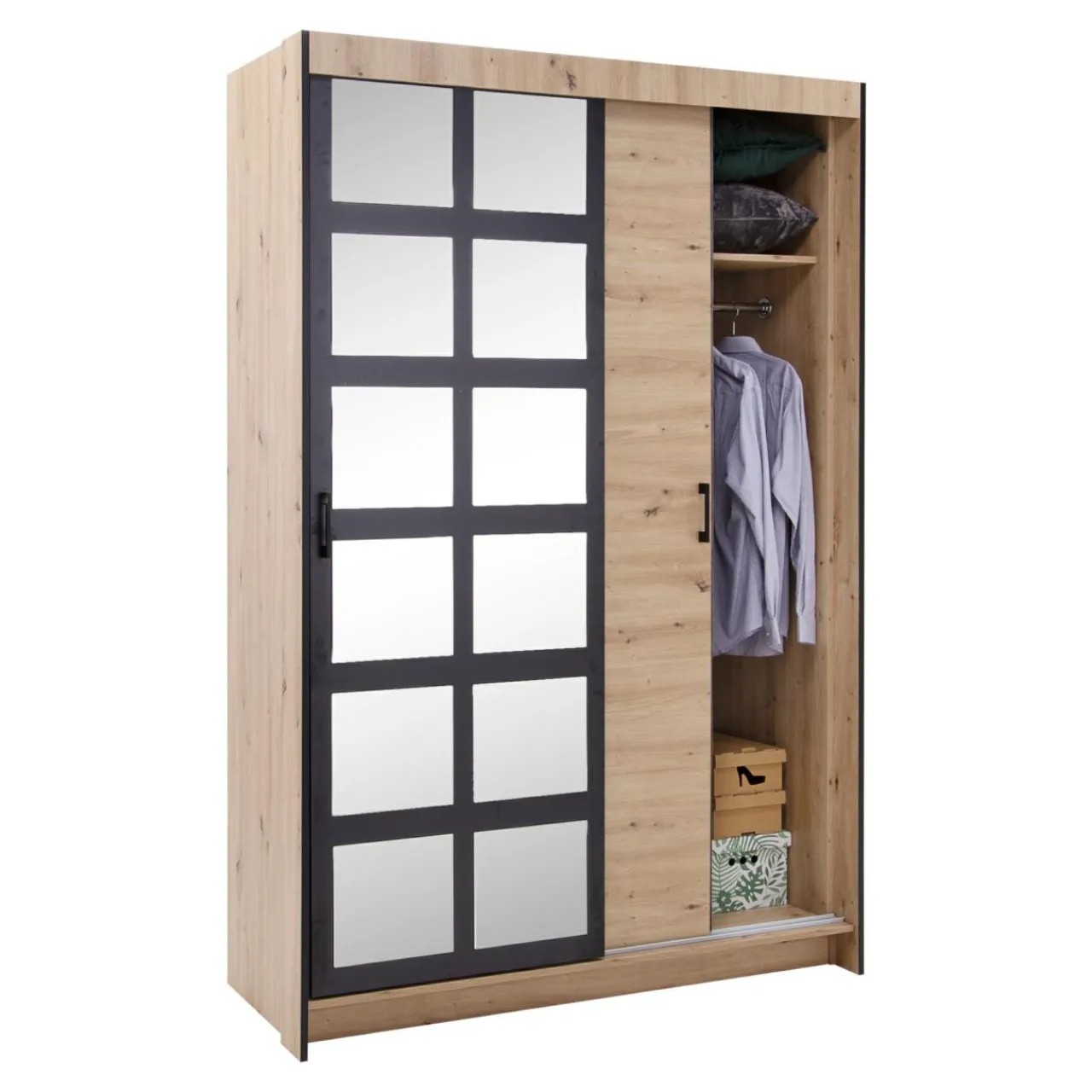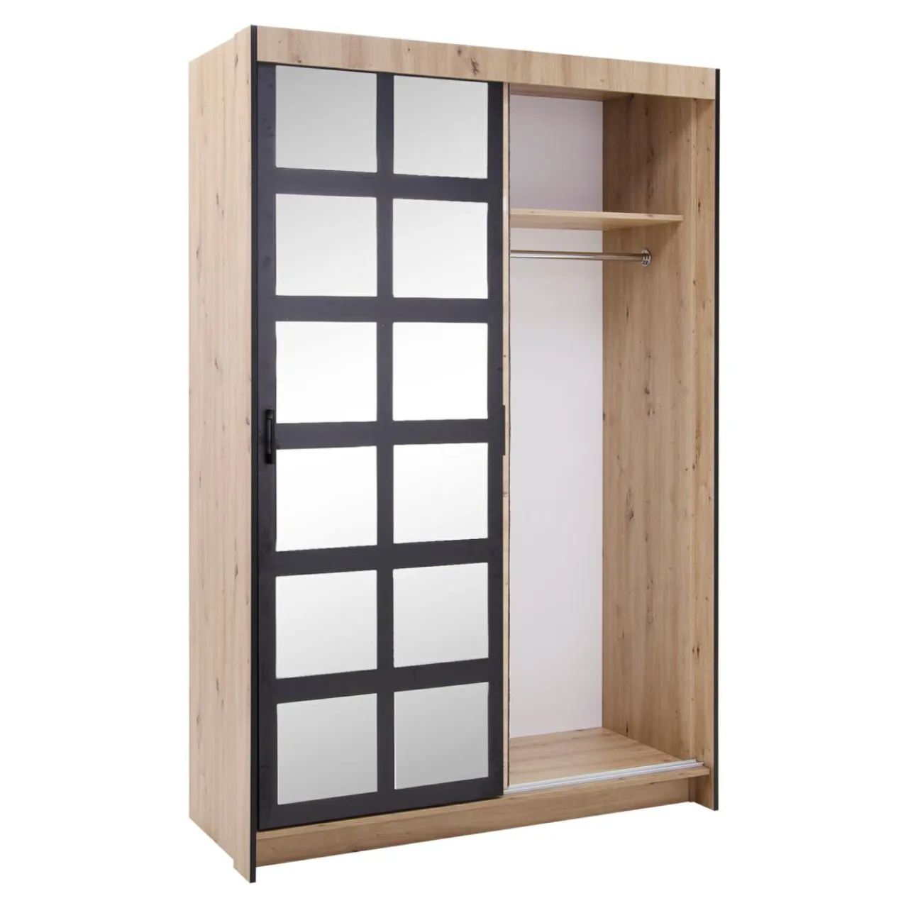 - Dzięki połączeniu laminatu w kolorze jasnego dębu artisan oraz czarnej ramki – Twoja sypialnia nabierze nowoczesnego wyglądu.