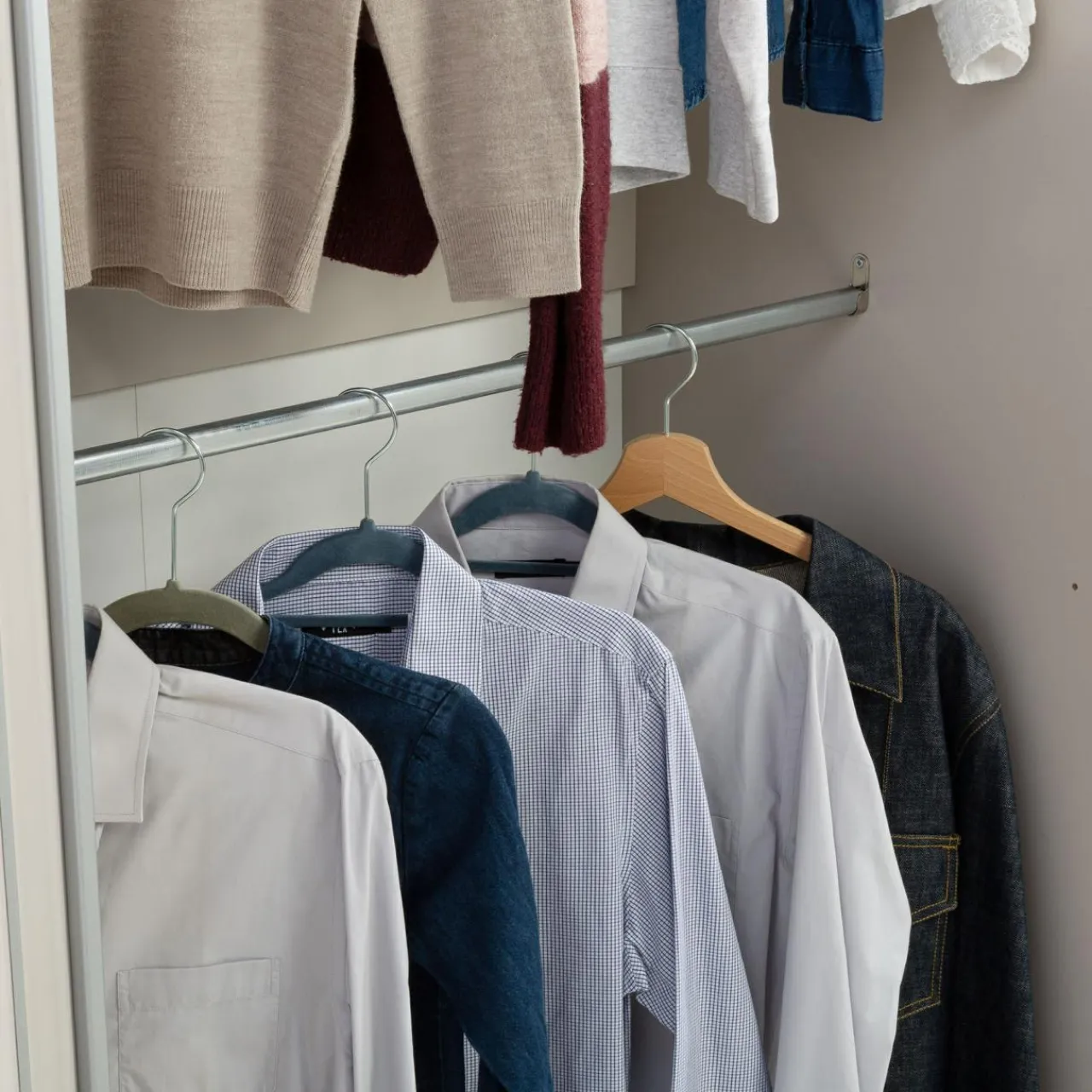 - 2 drążki – jeden u góry, drugi pośrodku, idealne na ubrania wiszące, takie jak marynarki, koszule czy płaszcze.