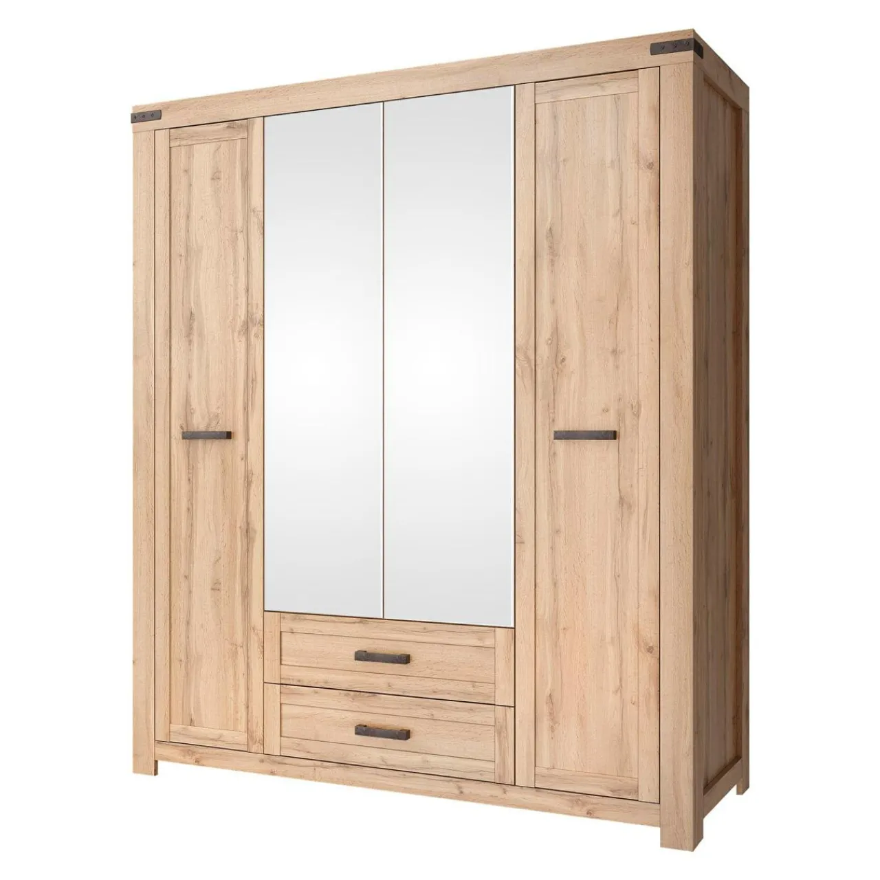 - Stylizowane, masywne uchwyty oraz okucia nadają meblowi rustykalny charakter.