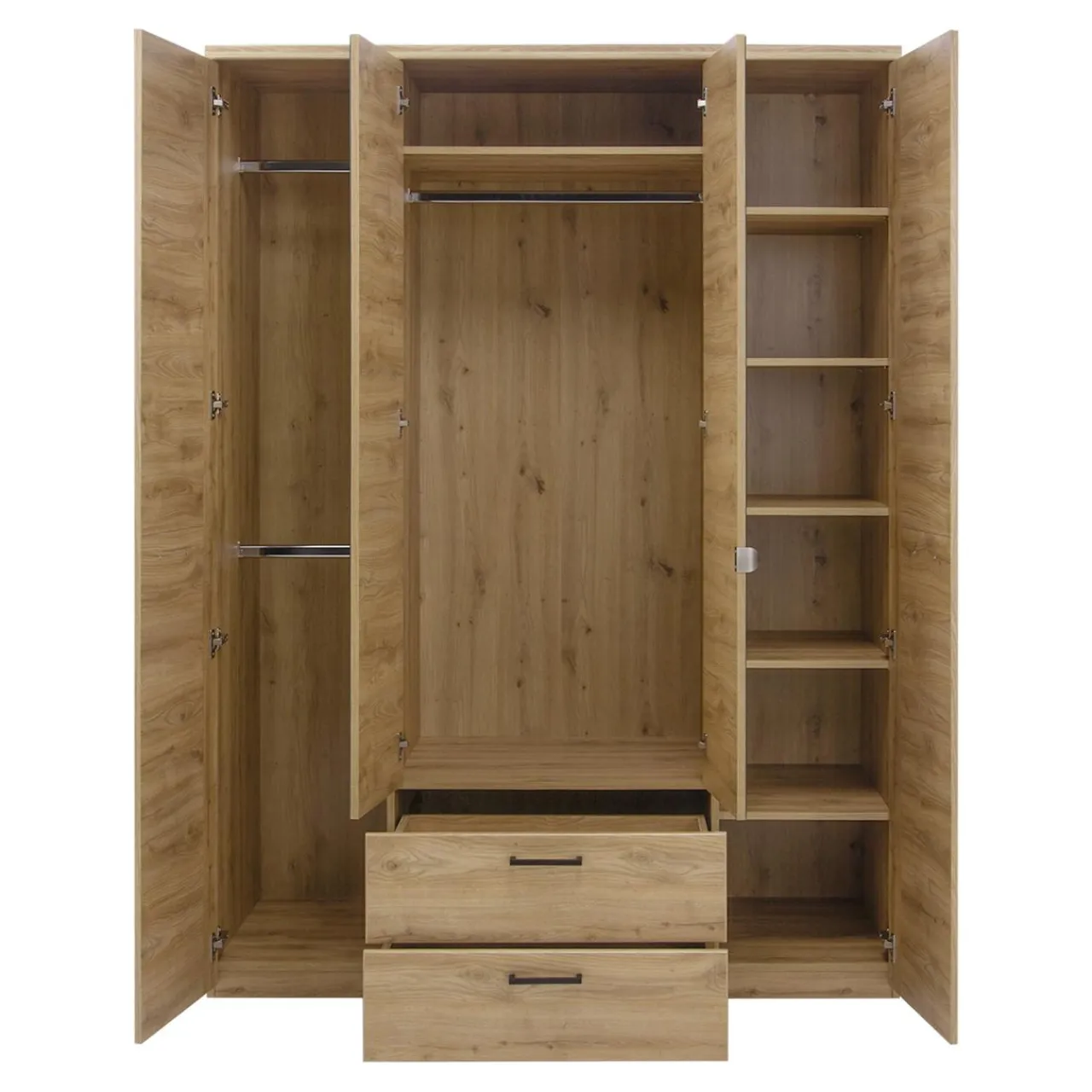 Szafa DOORSET zawiera w sobie wszystko, co powinien posiadać idealny mebel do przechowywania ubrań: półki, drążki do wieszania oraz szuflady na drobne rzeczy.