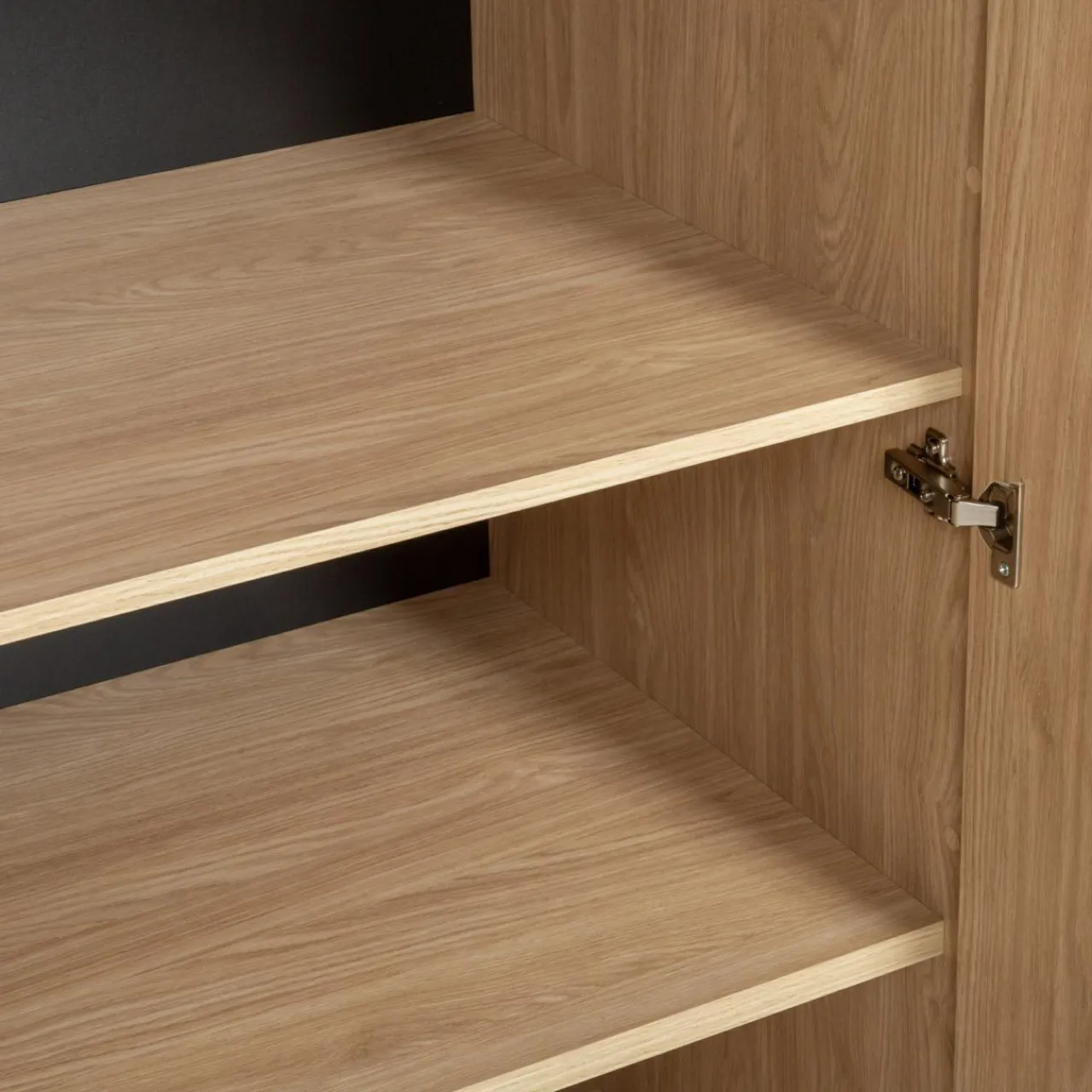 - Korpus wykonany jest z laminowanej płyty meblowej o wybarwieniu dąb olejowany.
