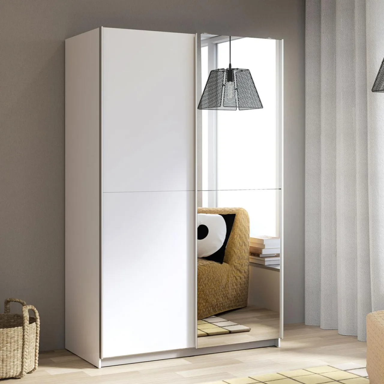 - Dzięki drzwiom przesuwnym szafę zmieścisz w wąskich pomieszczeniach.