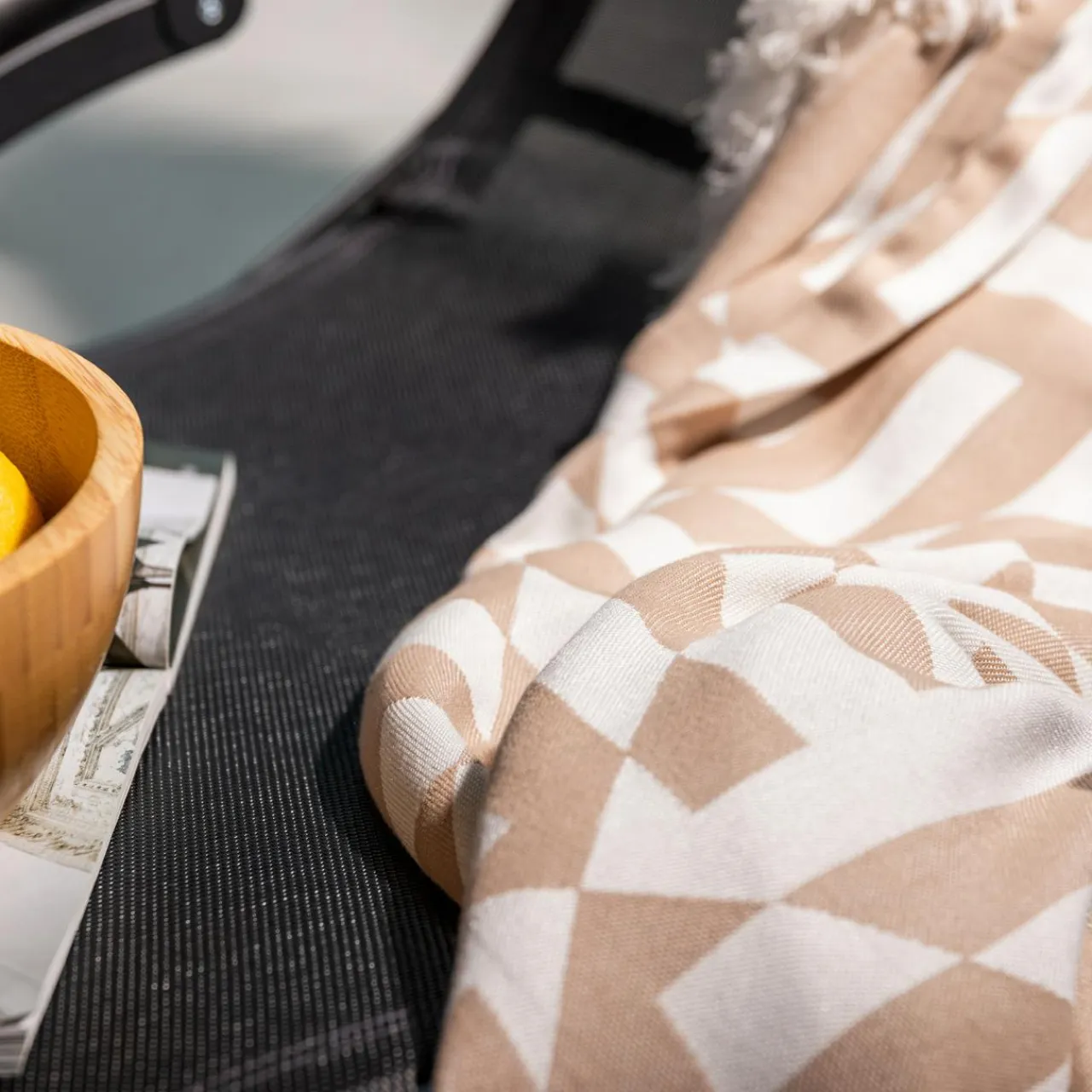 Pled z frędzlami MIRROR pomoże się zrelaksować i poczuć wakacyjny klimat.