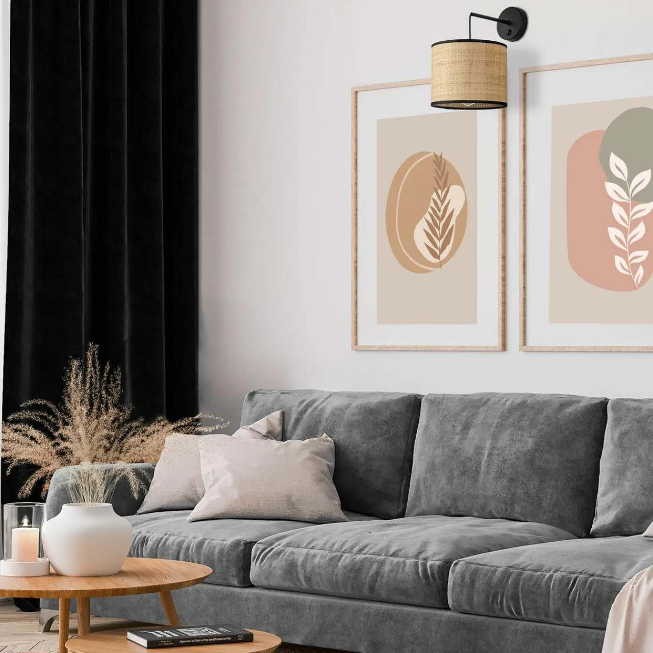 Rafia szczególnie dobrze wypada w kompozycjach boho – w połączeniu z beżem, drewnem i zielenią oraz we wnętrzach rustykalnych i skandynawskich na tle białych ścian i dodatków z jasnego drewna.