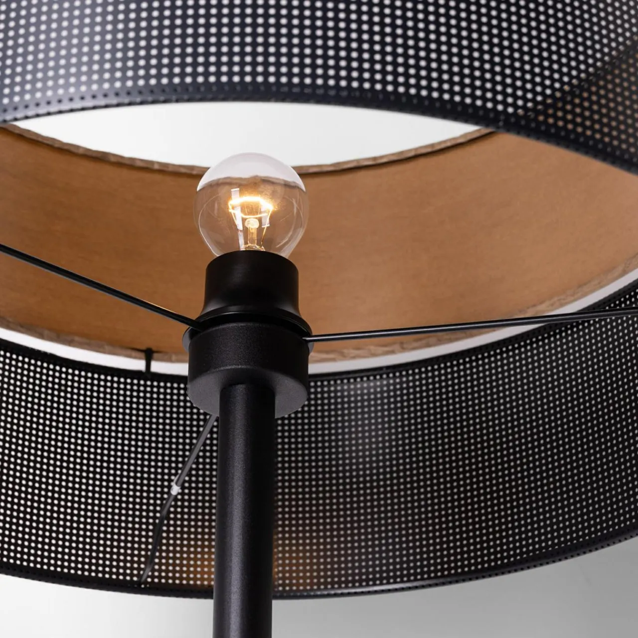 Specjalnie dobrany do lampy abażur składa się z 2 części.