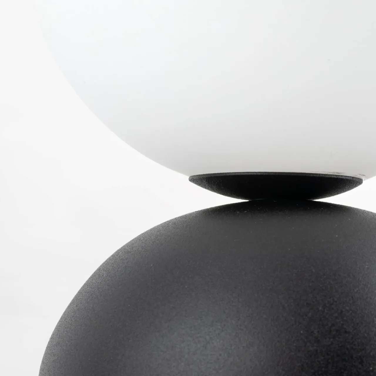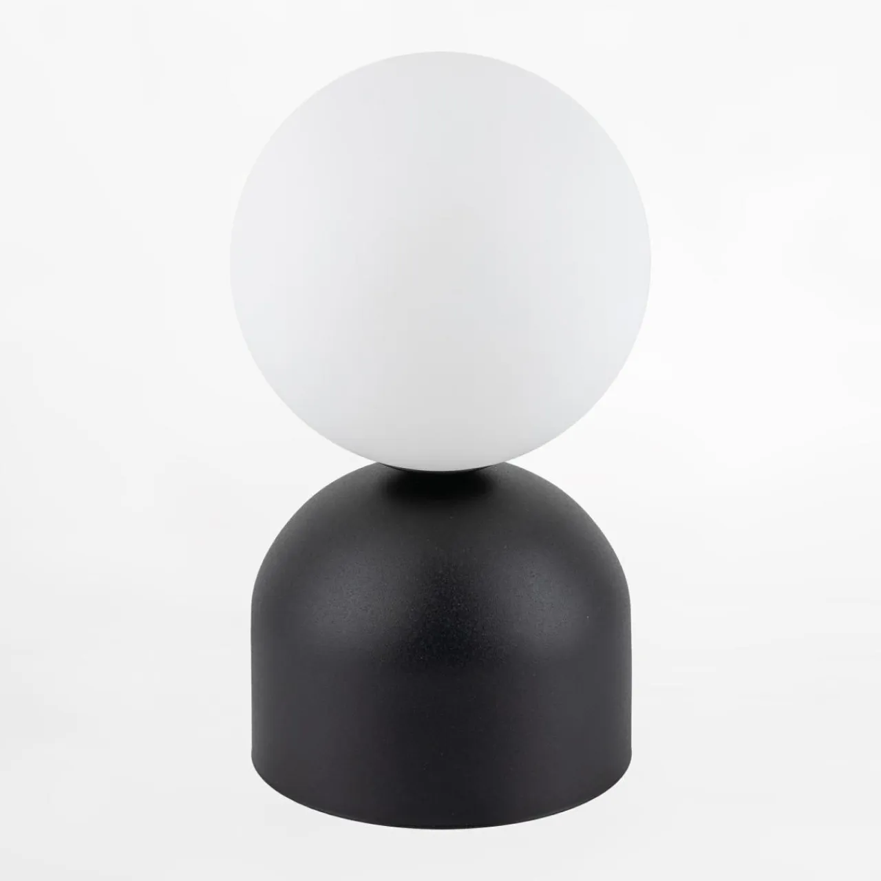- Lampka została wykonana ze stali lakierowanej oraz tworzywa sztucznego. Podstawa jest matowa, a klosz szklany.
