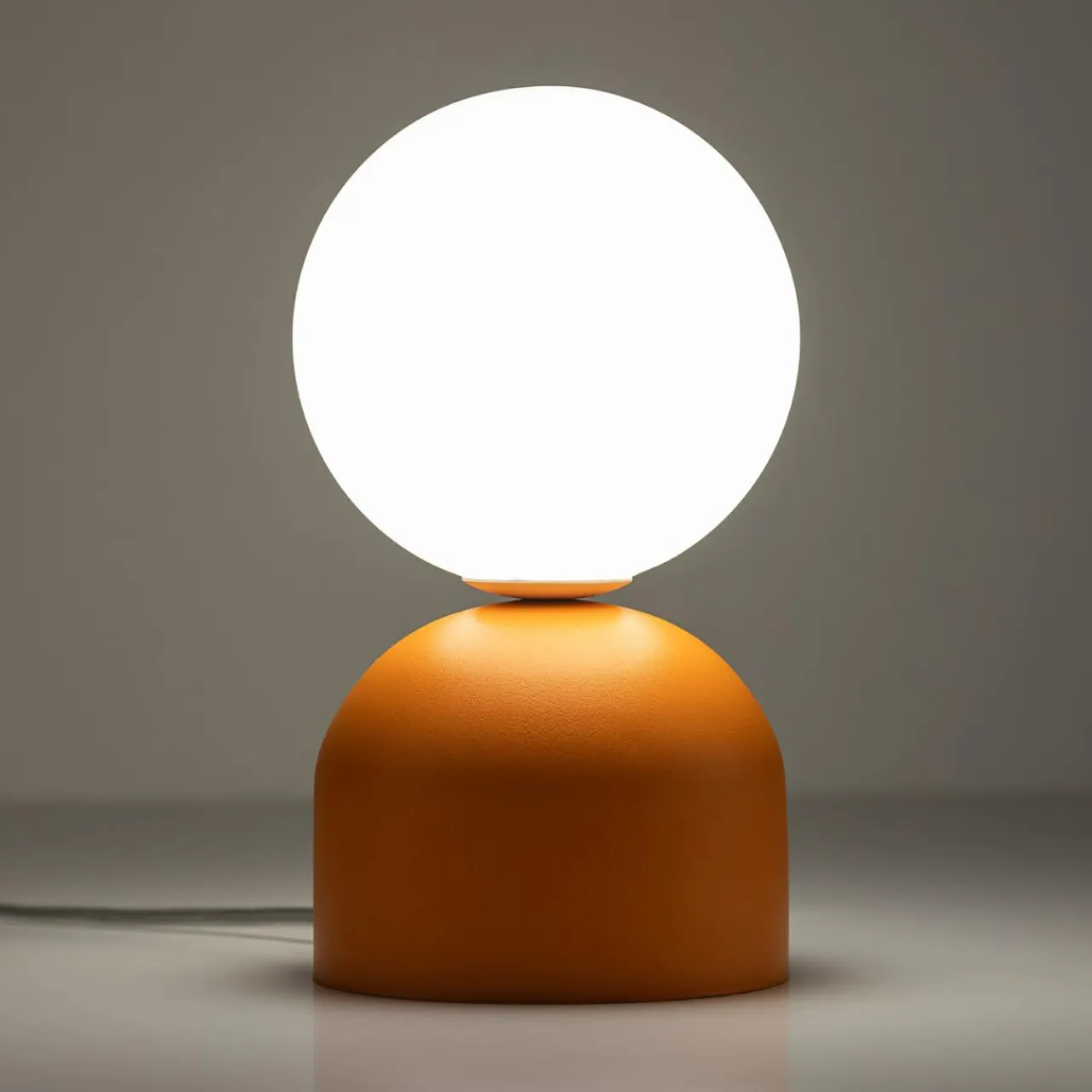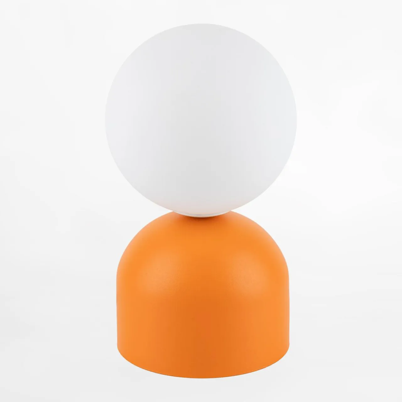 - Lampka została wykonana ze stali lakierowanej oraz tworzywa sztucznego. Podstawa jest matowa, a klosz szklany.