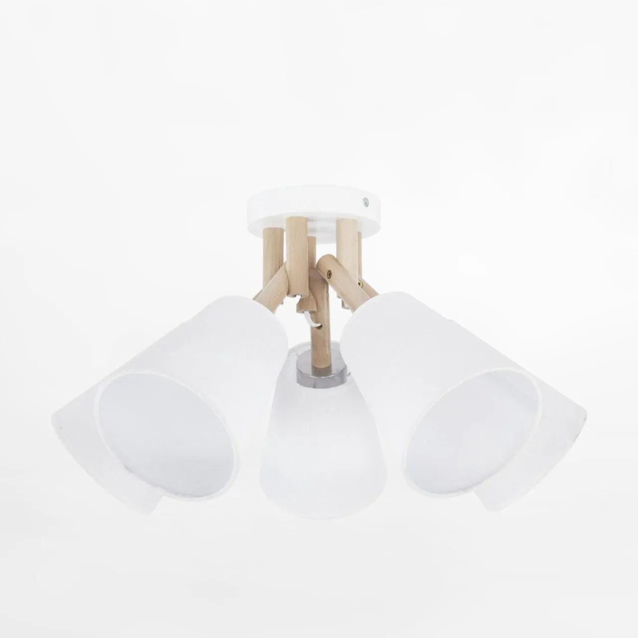 Zestawienie ramion w jasnym drewnie z białym kolorem tkaniny abażuru tworzy stylową kompozycję, która doskonale prezentuje się w jasnych wnętrzach.