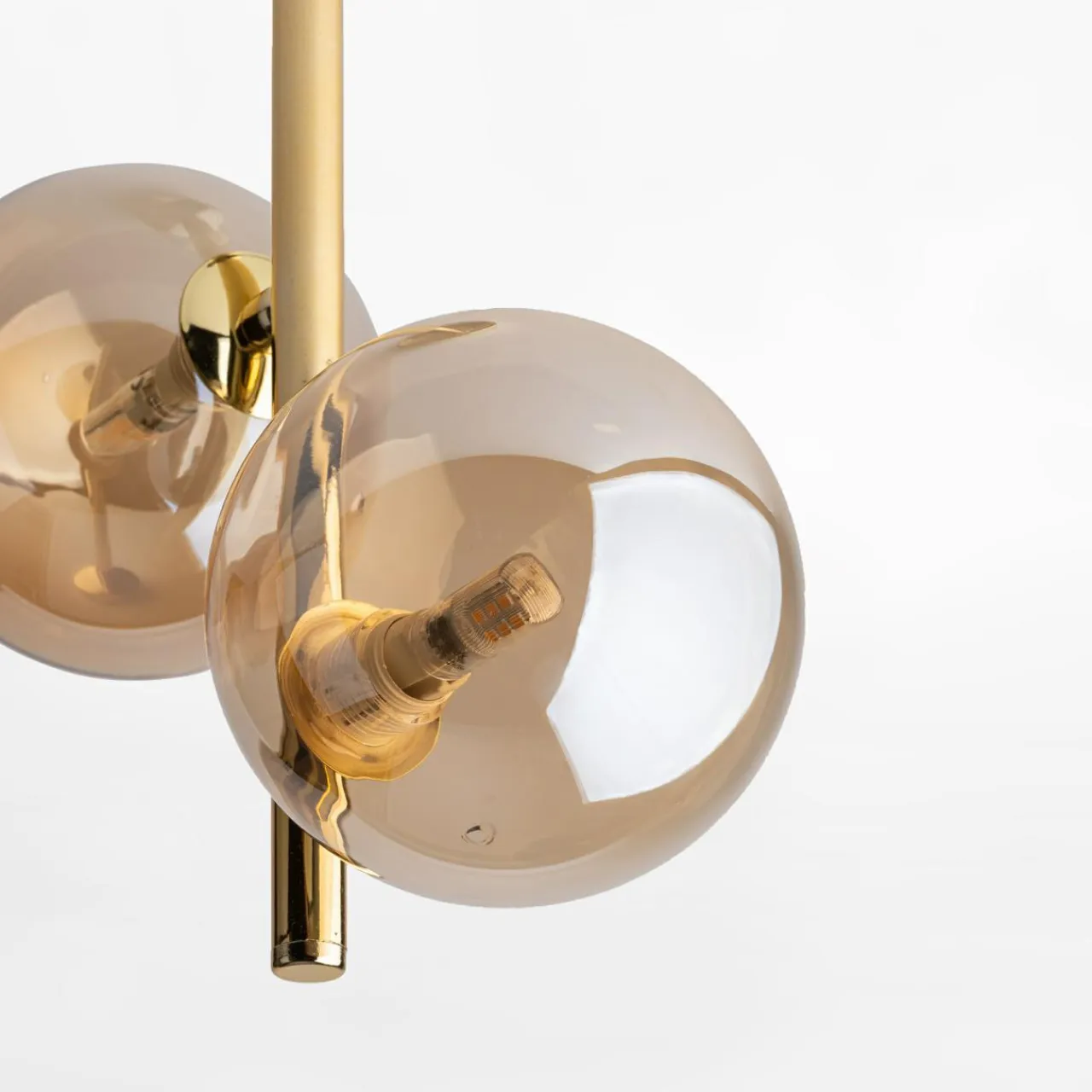 - Żarówki osłaniają kuliste, transparentne klosze o bursztynowym zabarwieniu.