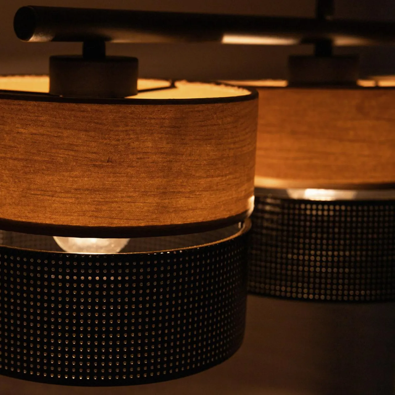- Sufitowy model lampy NICOL podkreśli naturalne piękno wydobyte z drewnianych wykończeń.