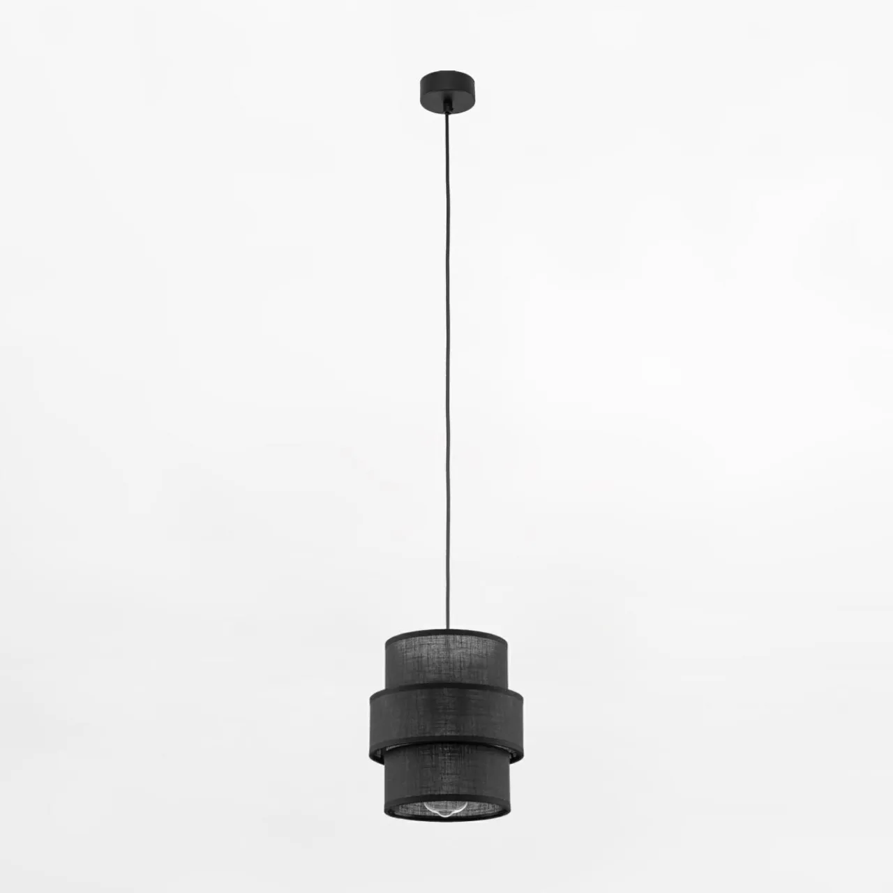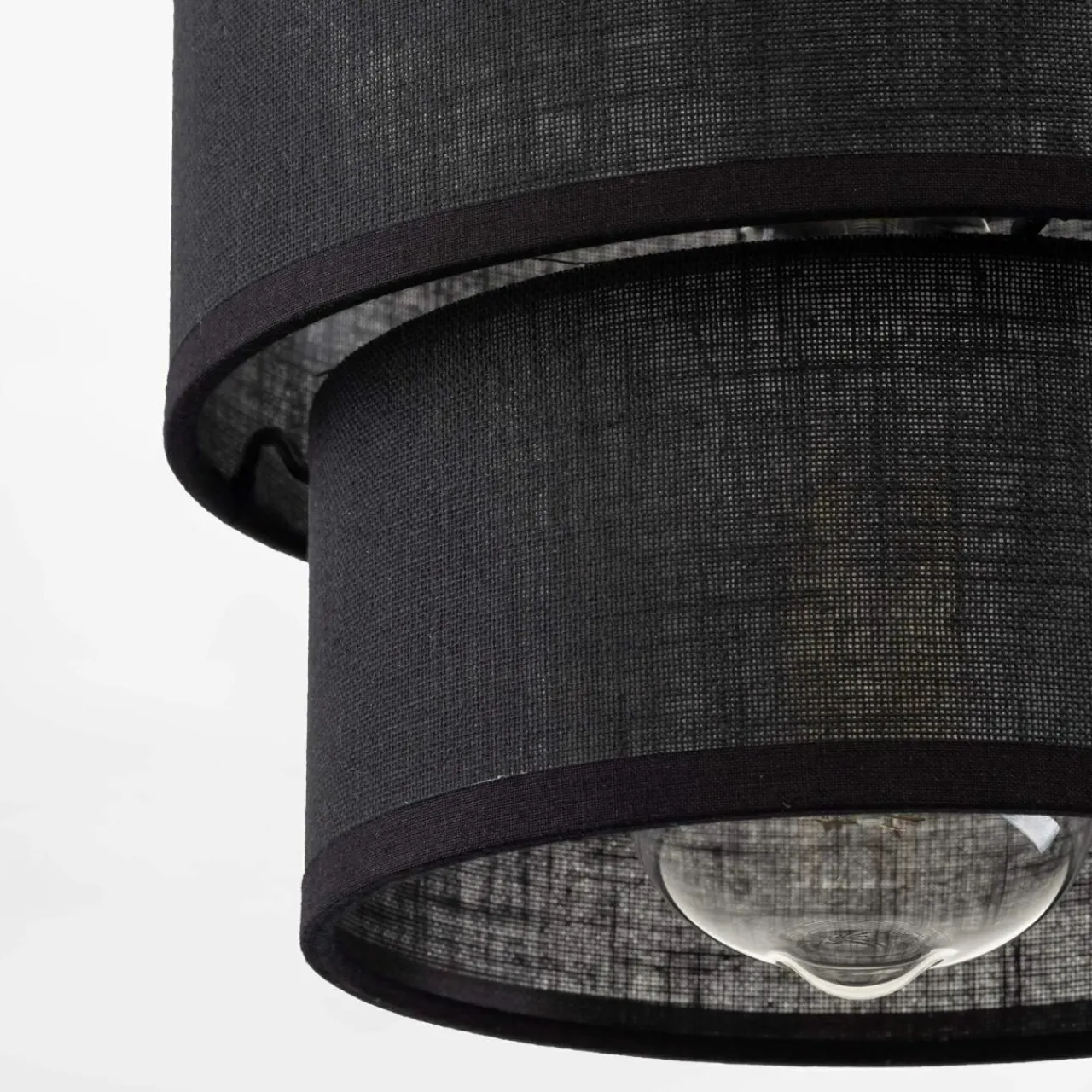 - Czarna kolorystyka tkaniny abażuru podkreśla surowość, która zestawiona z jasnymi wnętrzami pozwala uzyskać efekt kontrastu, który świetnie uwypukli nowoczesny styl w wystroju wnętrza.