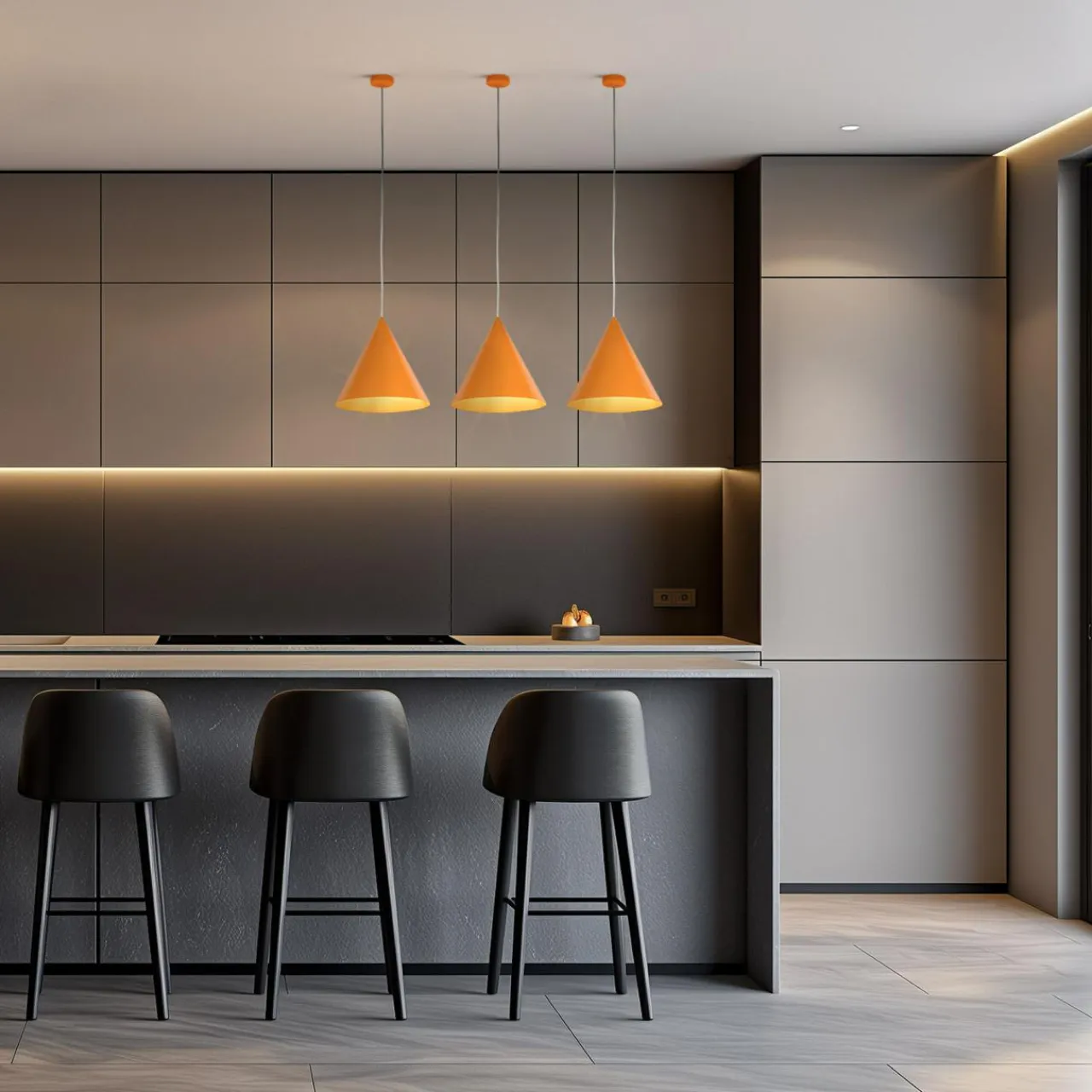 - Pomarańczowe wykończenie lampy CONO wprowadza aurę słonecznego ciepła do wnętrza, kolor ma matowy odcień.