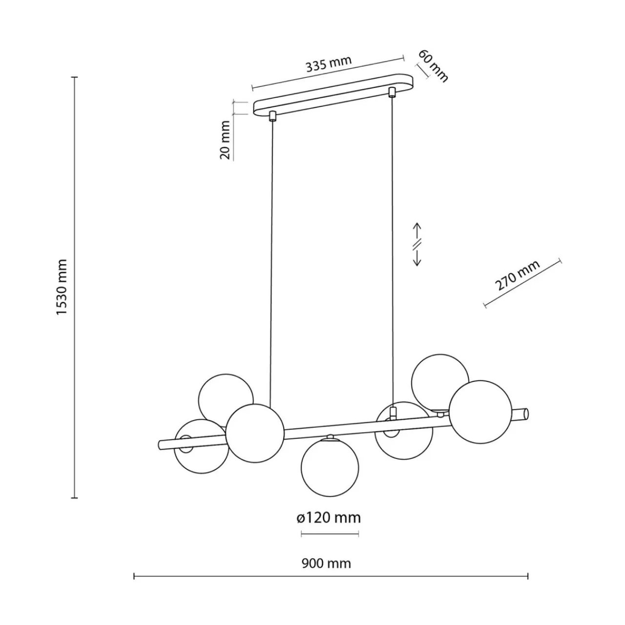 - Klosze są połączone z wąską listwą – długość zawieszenia ustawisz aż do 153 cm.