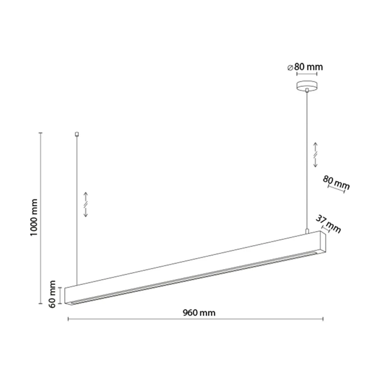 - TEO jest lampą wiszącą zaprojektowaną do dużych, przestronnych wnętrz. Ma długość 96 cm.