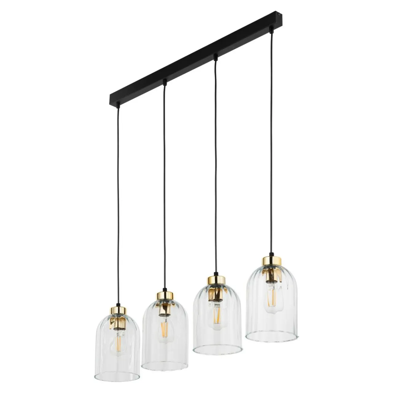 Ten model z podstawą o kształcie listwy i 4 szeregowo zawieszonymi kloszami świetnie odnajdzie się w reprezentacyjnej części mieszkania.