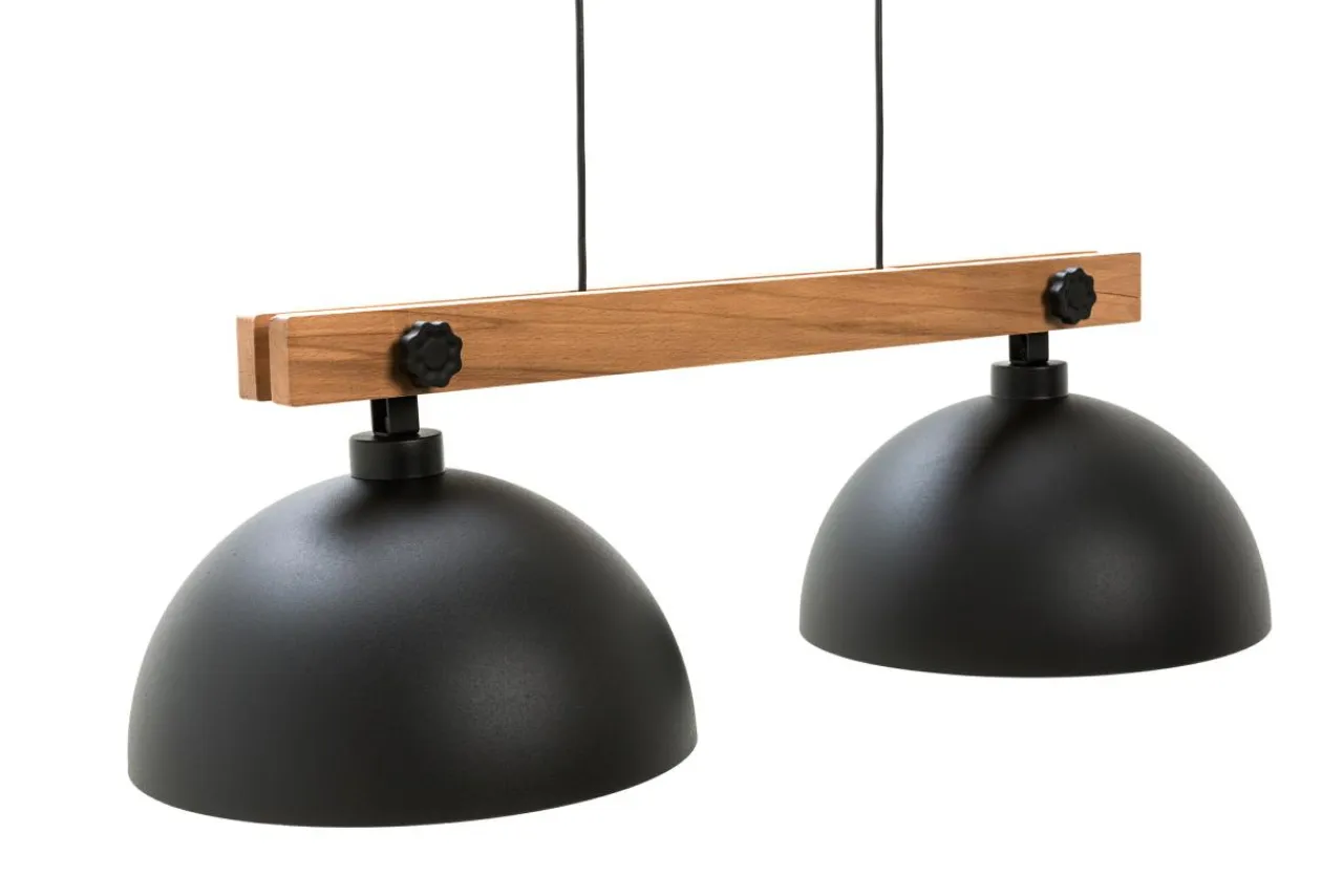 Drewniane ramię, metalowa listwa i klosz w czarnym kolorze to zestawienie, które świetnie wygląda w połączeniu ze skórzaną tapicerką oraz naturalną tonacją kolorystyczną drewnianych mebli oraz dodatków dekoracyjnych.