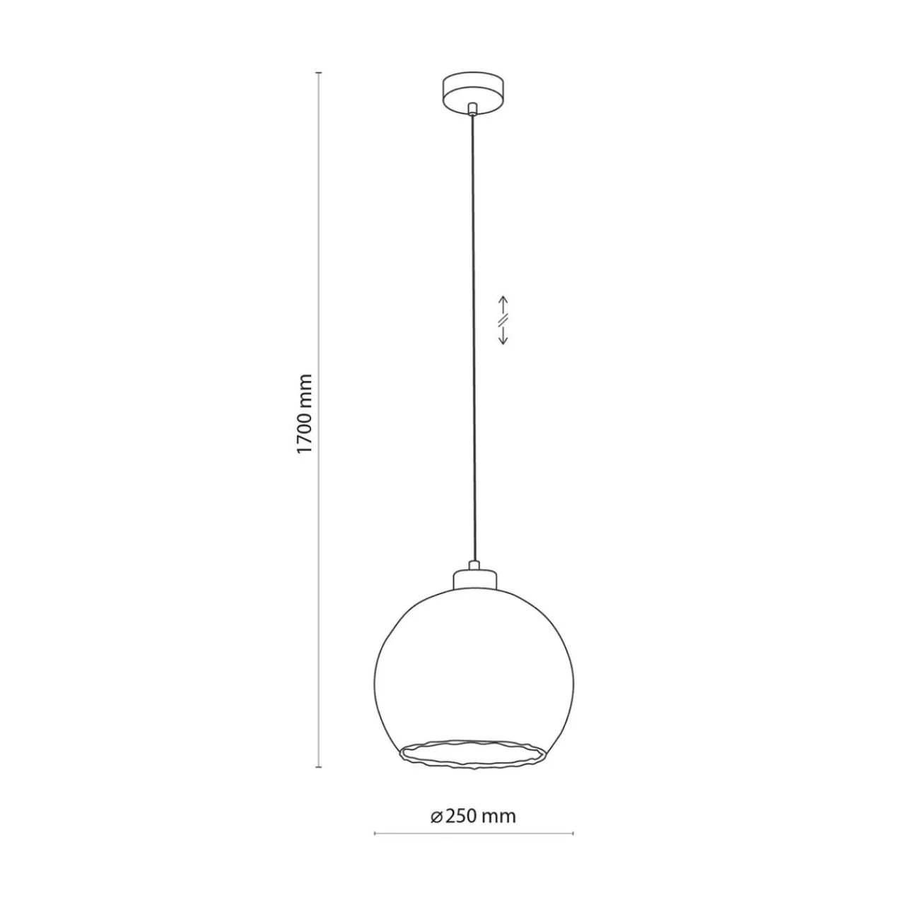 Pojedyncza lampa DEVI posiada regulację wysokości zawieszenia. Jej maksymalna długość to 170 cm.
