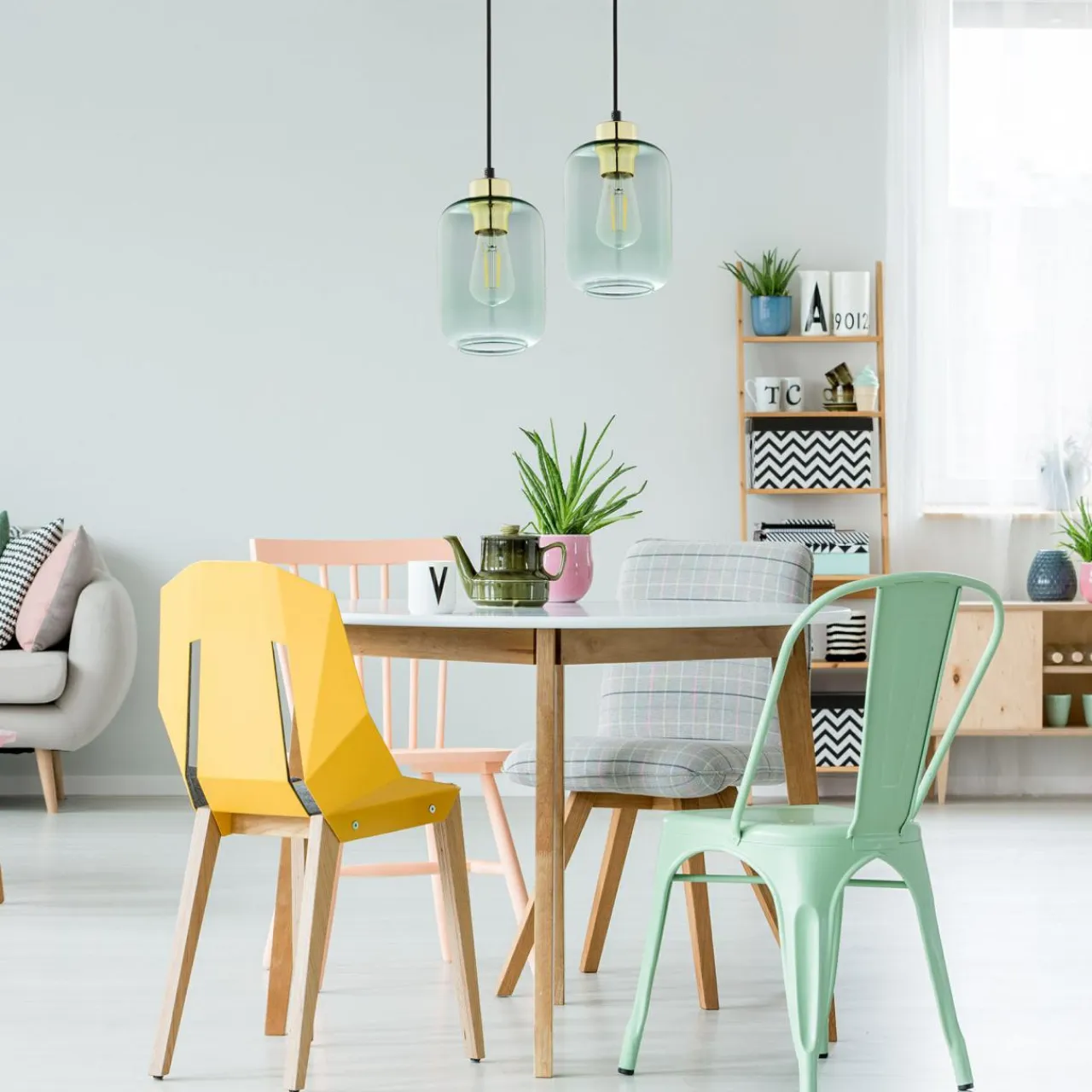 - Transparentny klosz w zielonym odcieniu pozwala dopasować żarówkę dekoracyjną.
