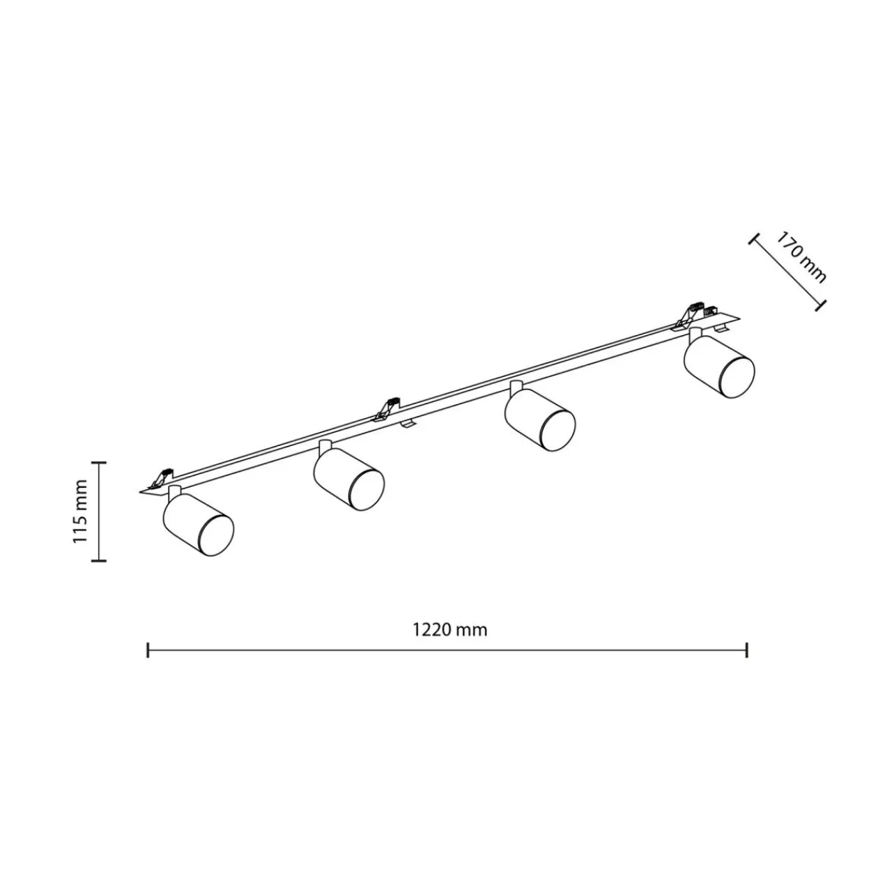 Ten model lampy NEX posiada oprawę dla 4 żarówek LED typu GU10 o mocy maksymalnej 8W.