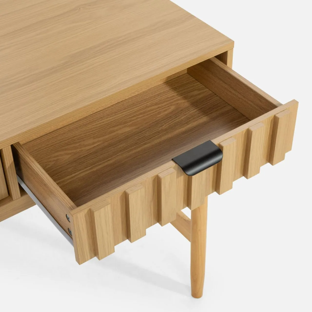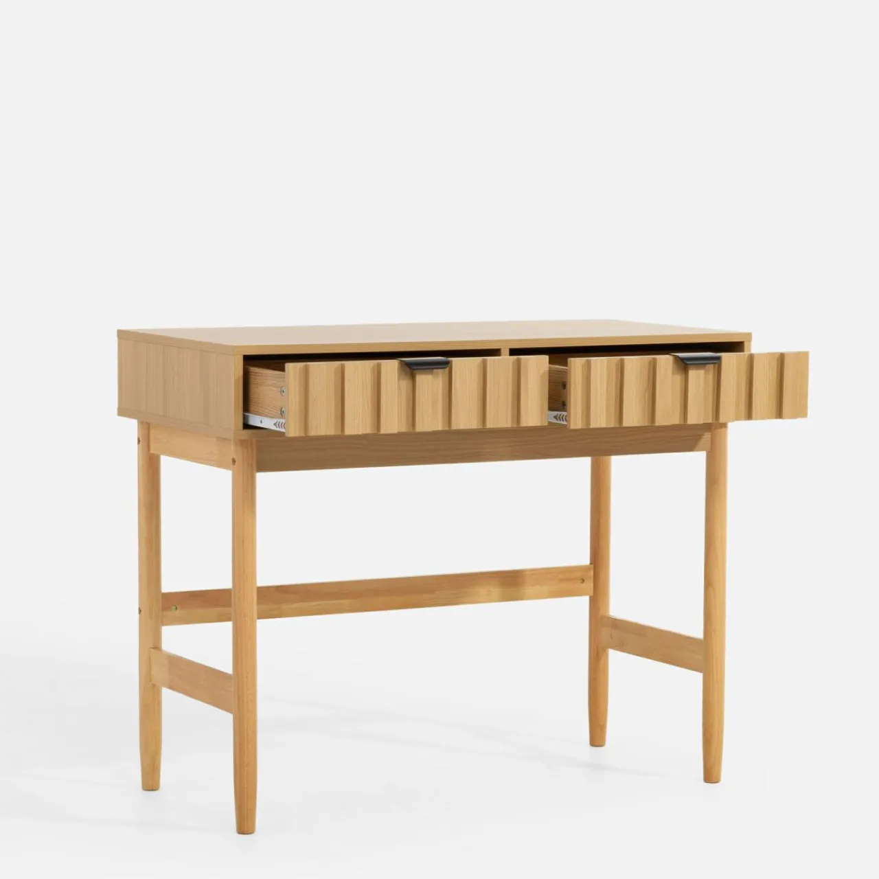 - 2 szuflady – idealne do przechowywania drobnych przedmiotów, dzięki czemu blat pozostaje wolny od bałaganu.