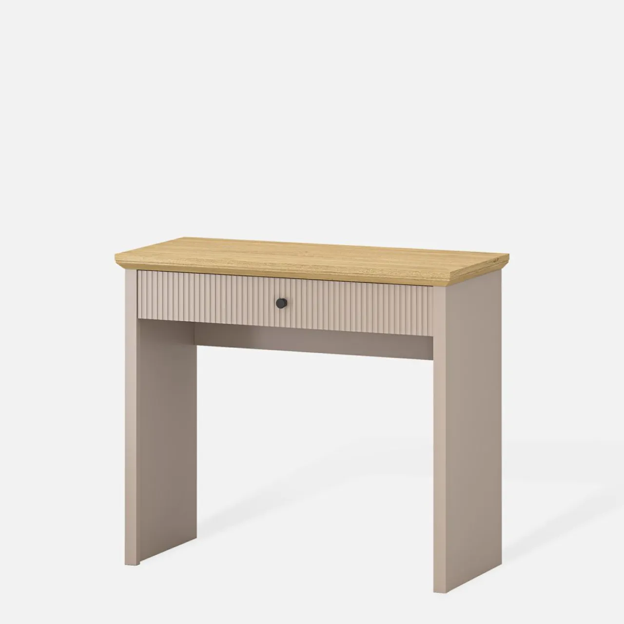 Toaletka IDELLO w odcieniach taupe i dębu kamiennego to MEBEL, który doskonale sprawdzi się w sypialni lub w przedpokoju. Idealna do porannych przygotowań lub planowania wieczornych stylizacji.