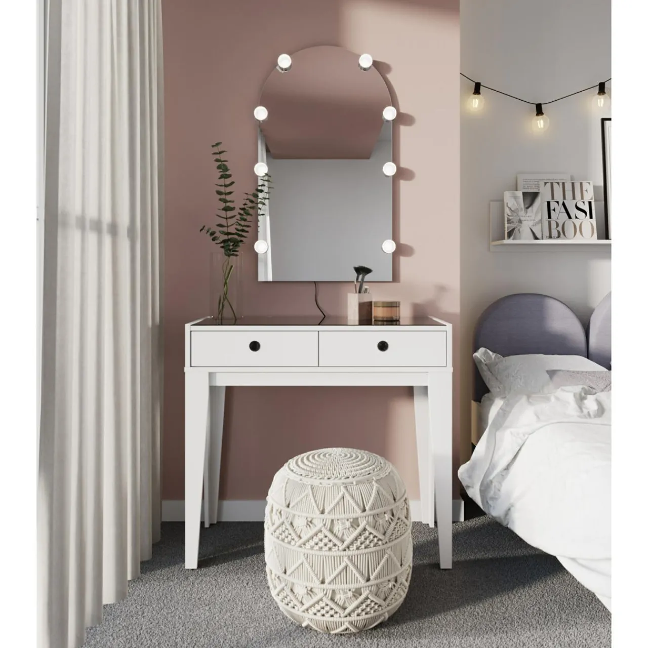 - Toaletka dla nastolatek FEMII została wykonana z płyty meblowej wykończonej laminatem w kolorze alpejskiej bieli.