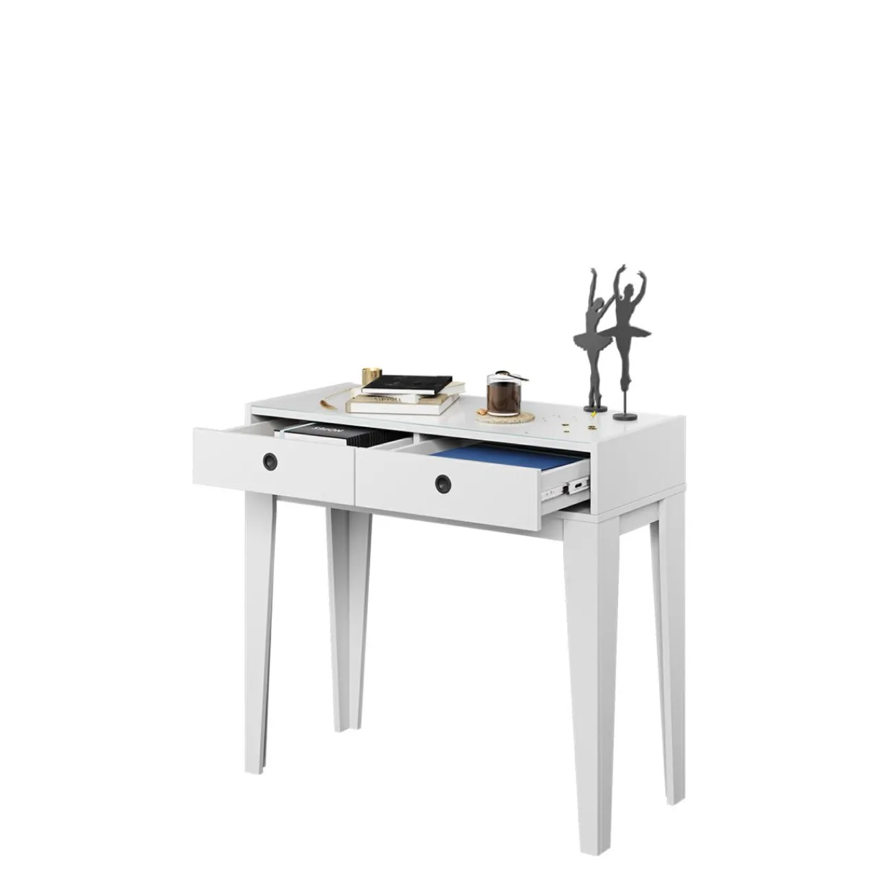 Na blacie pokrytym szybą, postawisz ulubione lusterko i oświetlenie, które najlepiej spełnia Twoje wymagania.