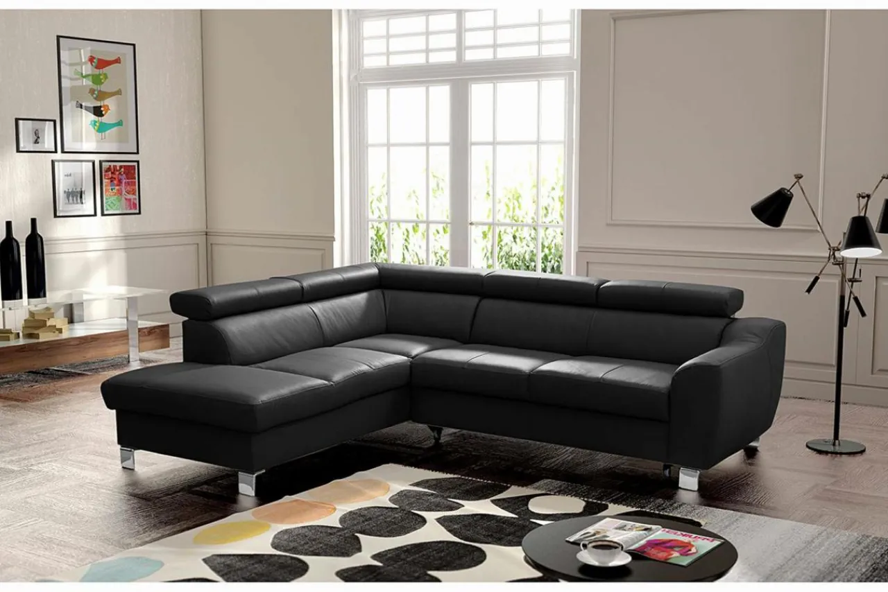 Narożnik wykończono skórą naturalną, która wprowadza do wnętrza poczucie elegancji i prestiżu.