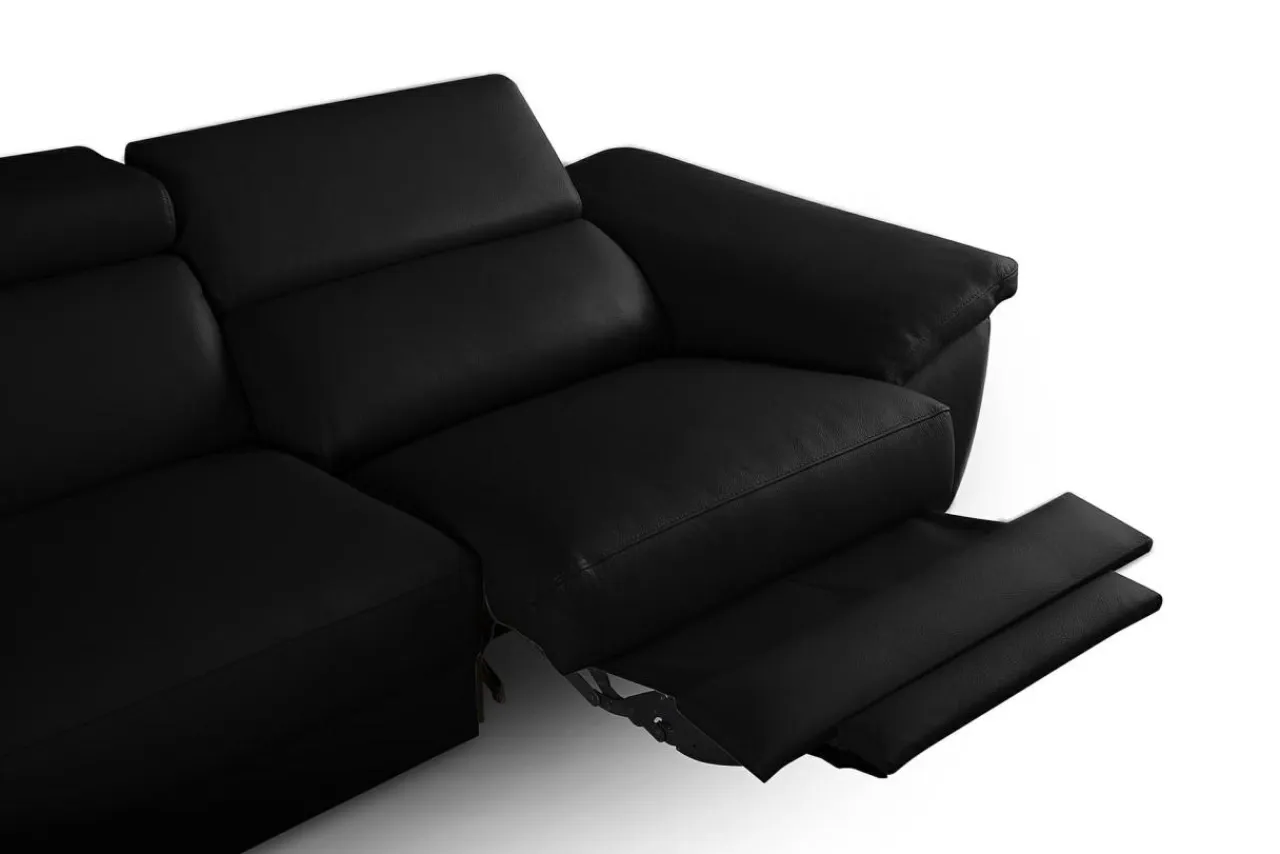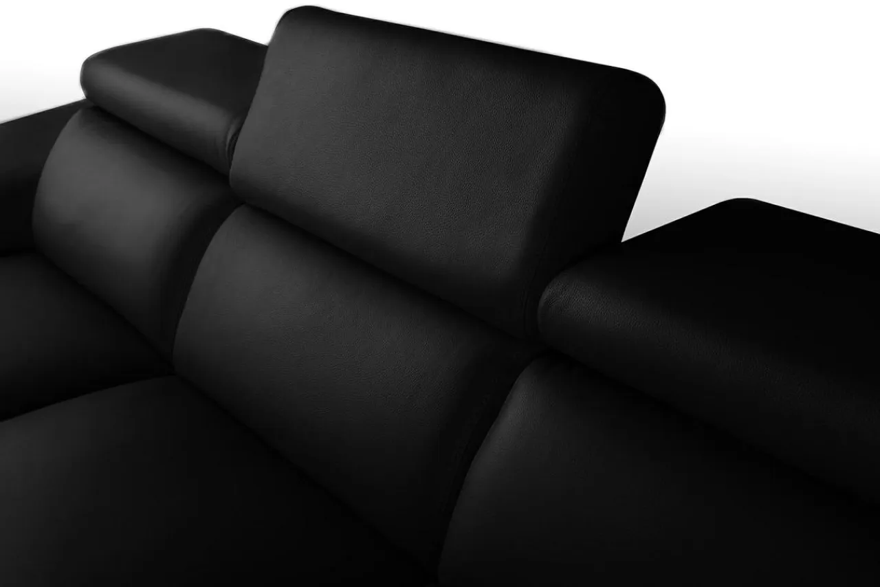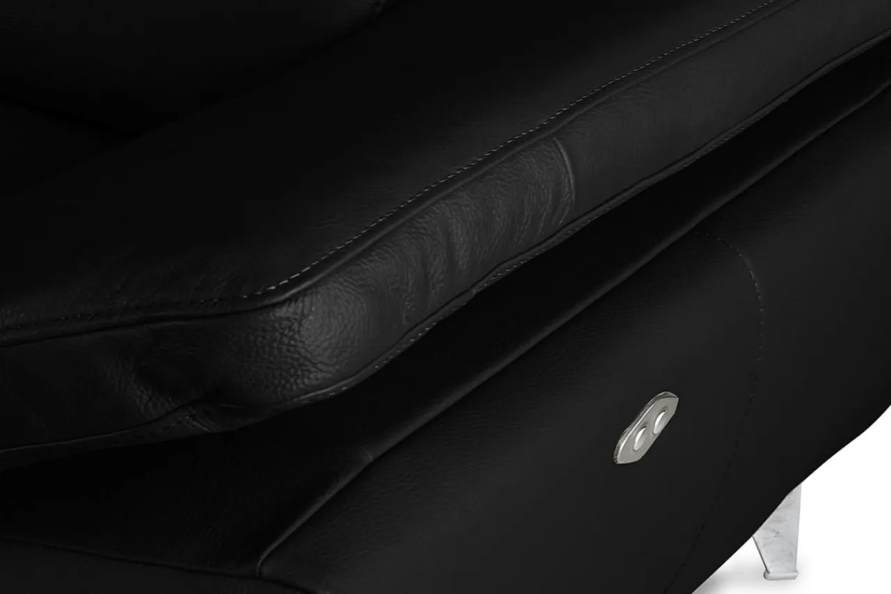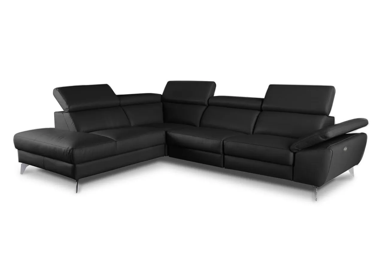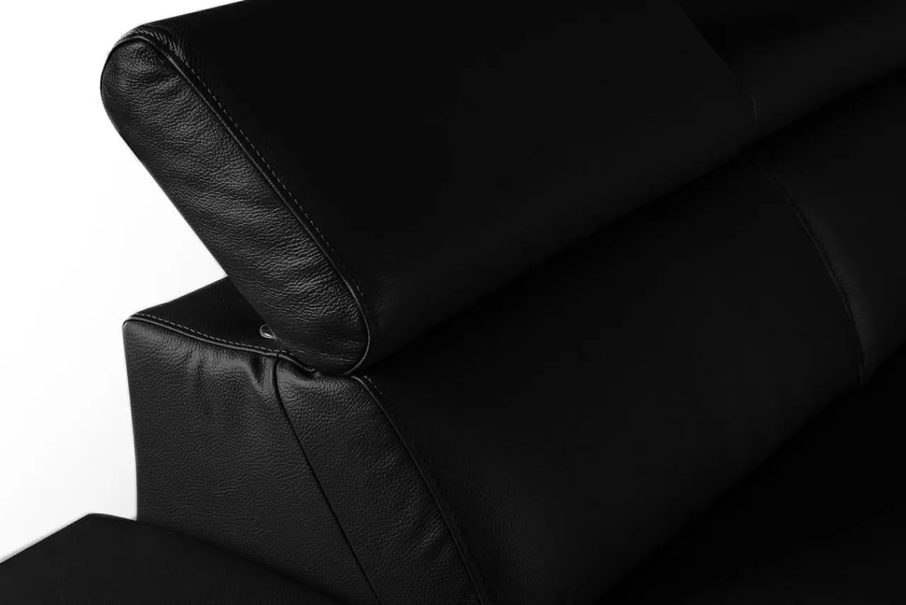 Narożnik została pokryty skórą naturalną z kolekcji DOLLARO w odcieniu NERO. Metalowe nóżki podkreślają nowoczesny charakter narożnika i nadają mu nieco smukłości.
