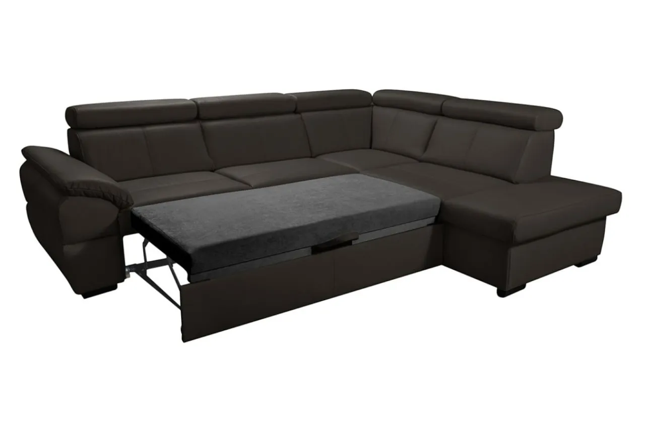 - Istnieje możliwość rozłożenia części narożnika. Dzięki mechanizmowi typu delfin zyskasz powierzchnię spania o wymiarach 124×189 cm.