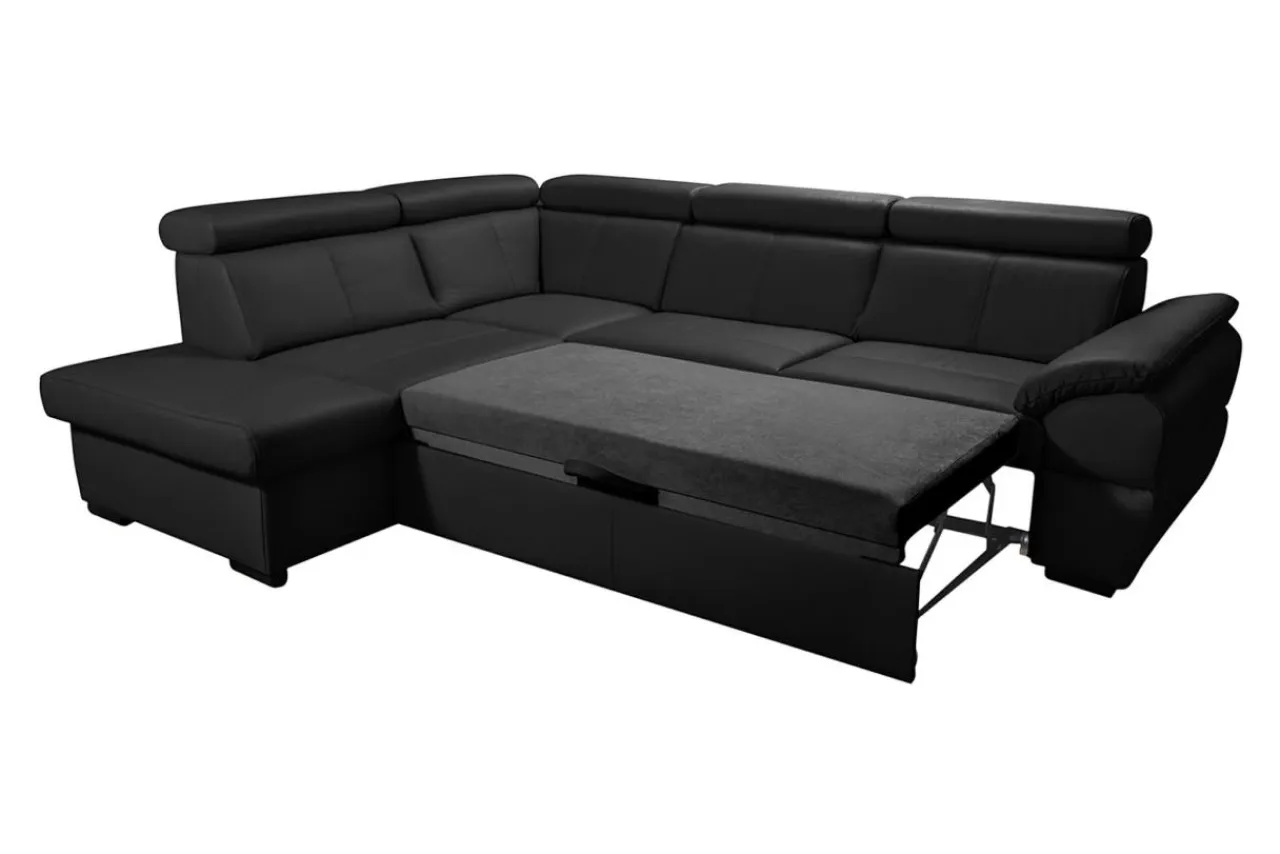 - Istnieje możliwość rozłożenia części narożnika. Dzięki mechanizmowi typu delfin zyskasz powierzchnię spania o wymiarach 124×189 cm.