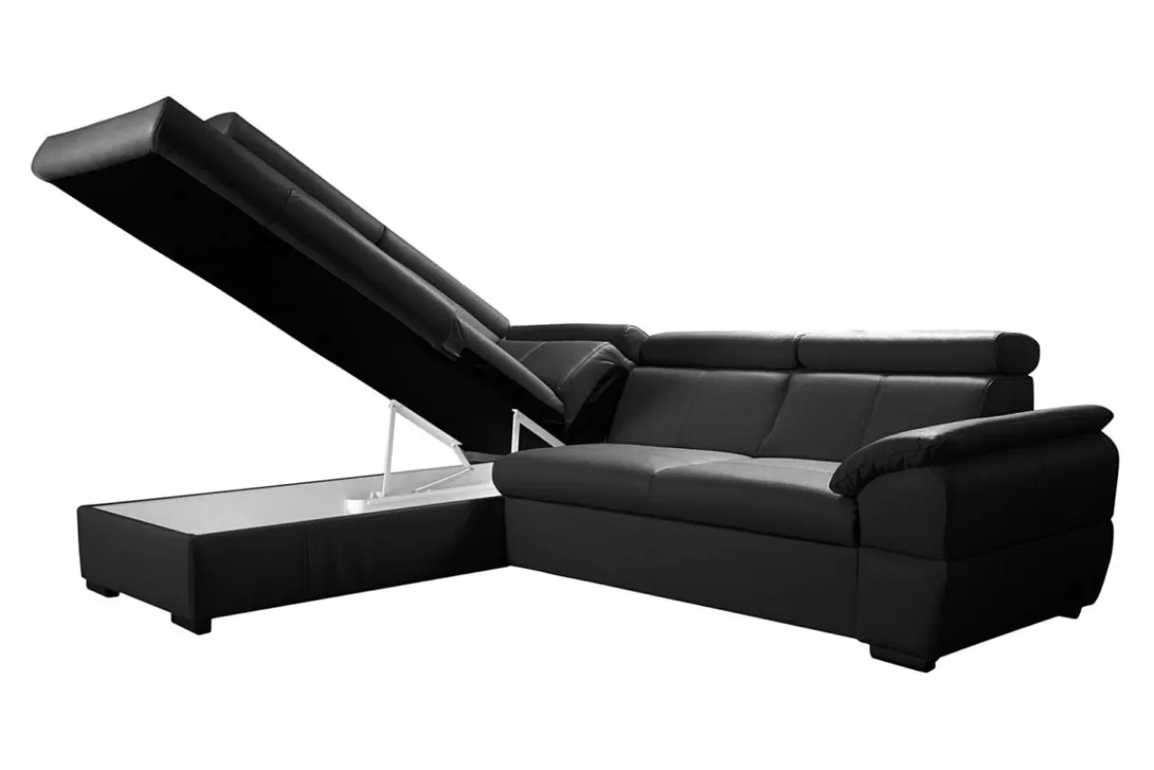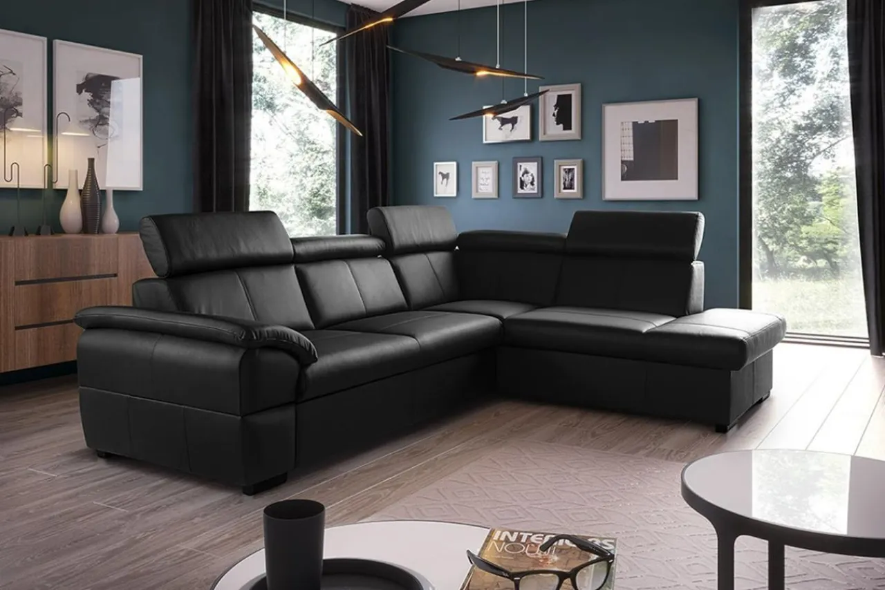 Czarny narożnik ze skóry naturalnej to idealny wybór do eleganckich wnętrz. Ustaw go w centralnym miejscu pokoju dziennego, a będzie prawdziwą wizytówką domu.