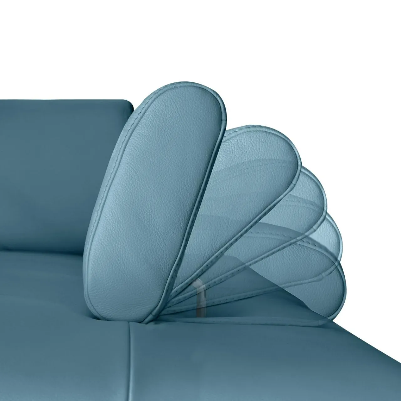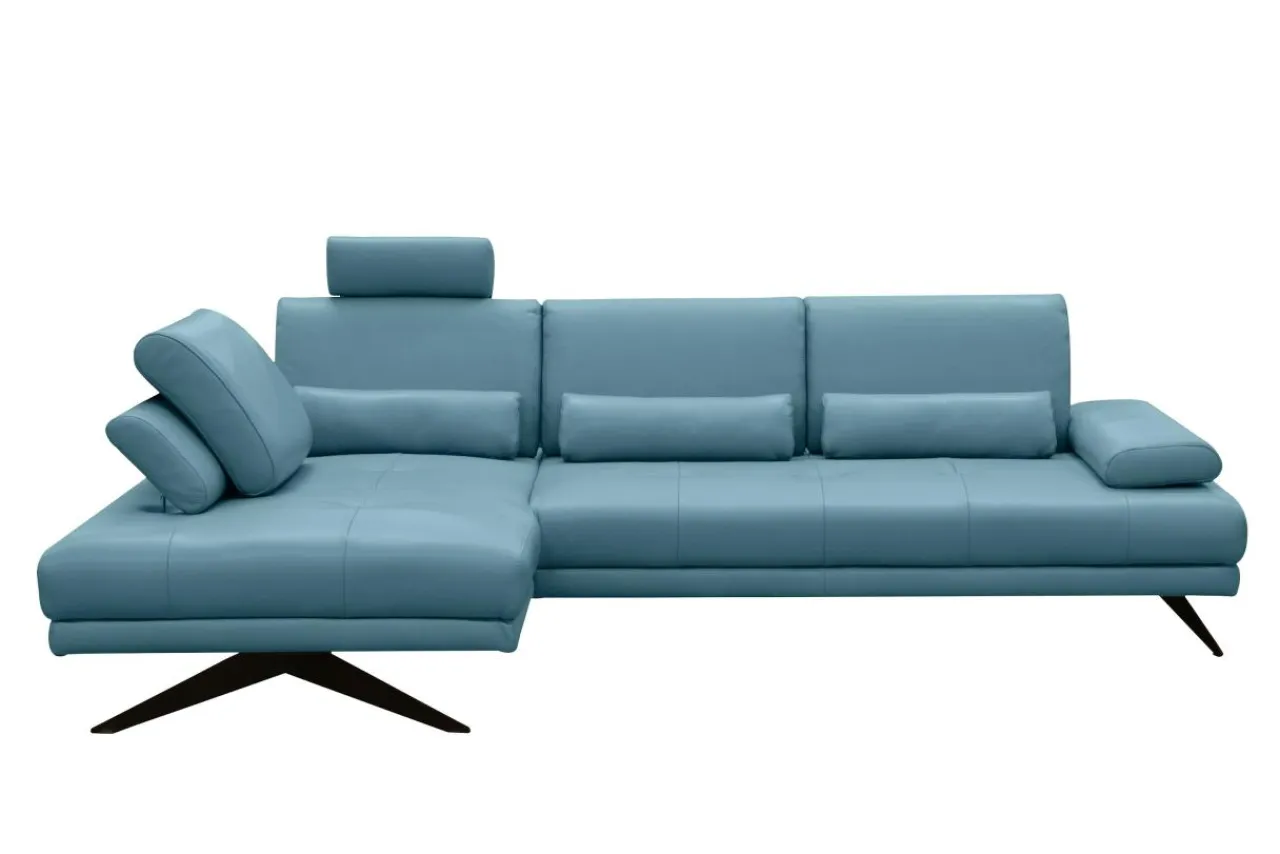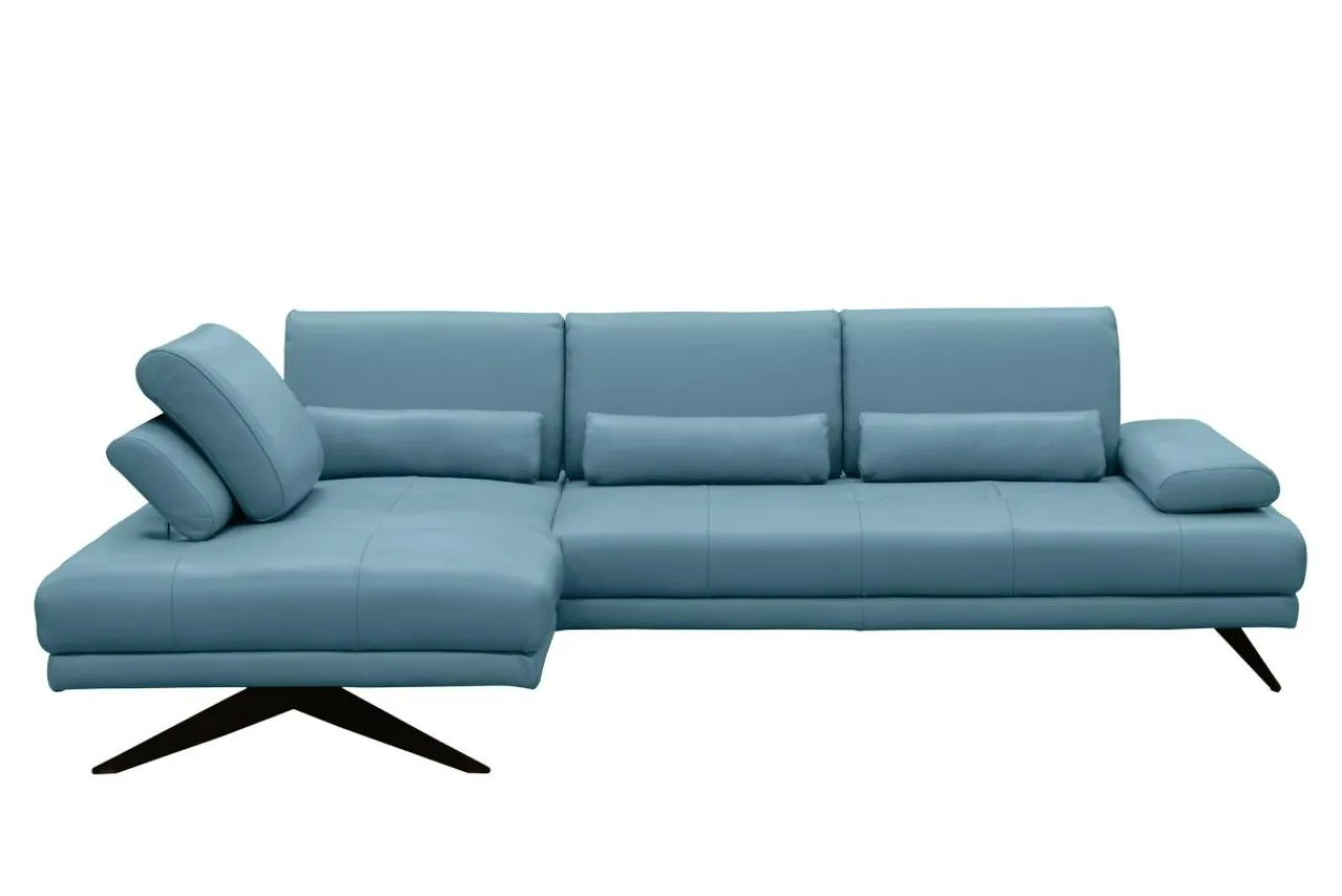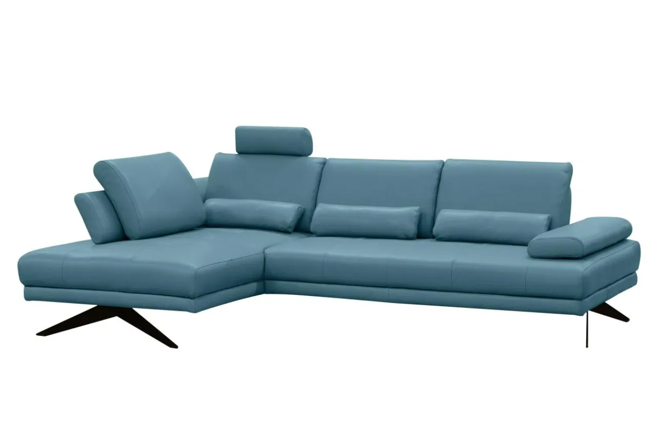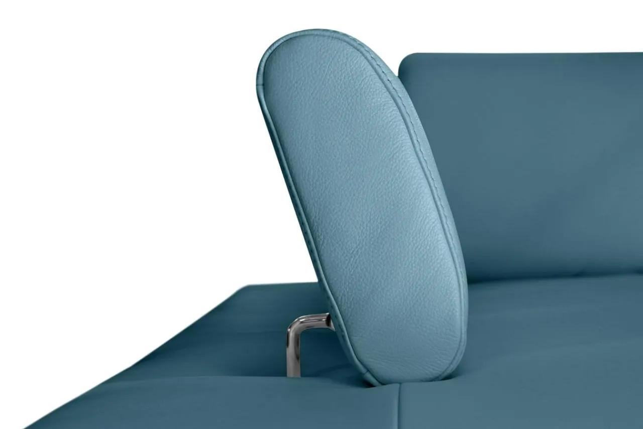 Wykończenie skórą naturalną to prestiż i elegancja. Narożnik LAZUR dodatkowo zaskakuje nietypową – niebieską barwą.