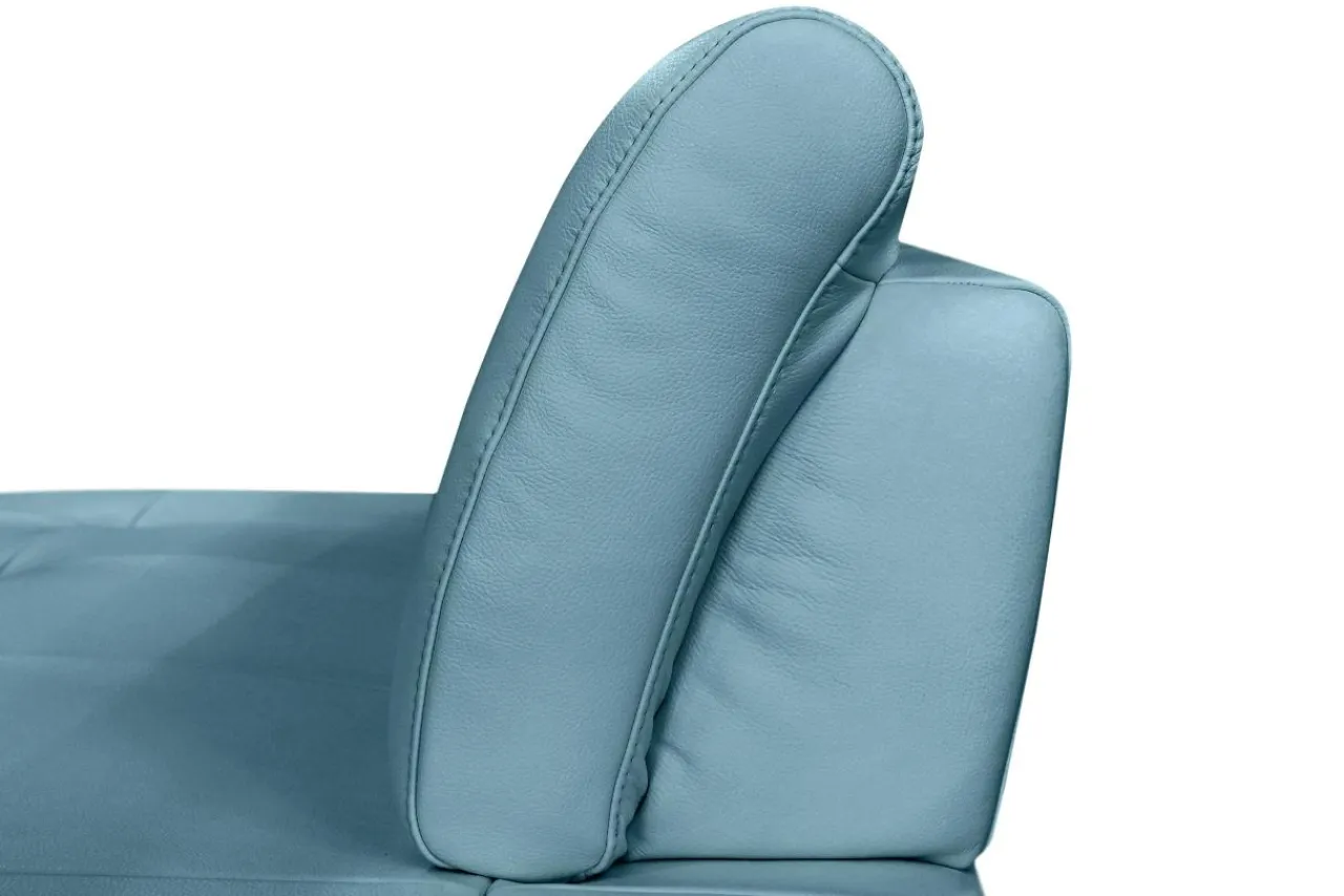 Zauroczy Cię lazurową barwą i ponadczasową strukturą skóry naturalnej. Zachwyci nowoczesnym projektem podstawy i dodatkowymi poduchami.